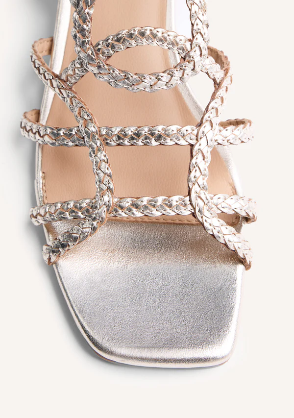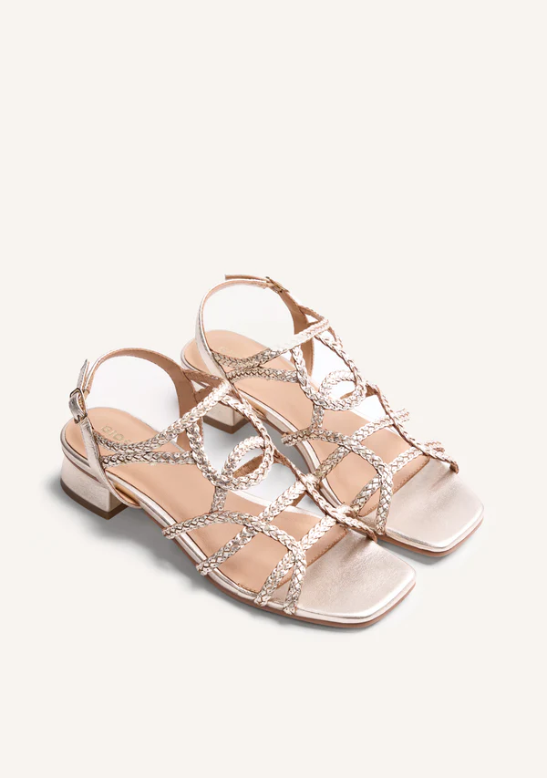 As Bilice Sandals oferecem elegância discreta com um salto baixo confortável. O acabamento metálico e o entrançado artesanal criam uma peça versátil e sofisticada.
