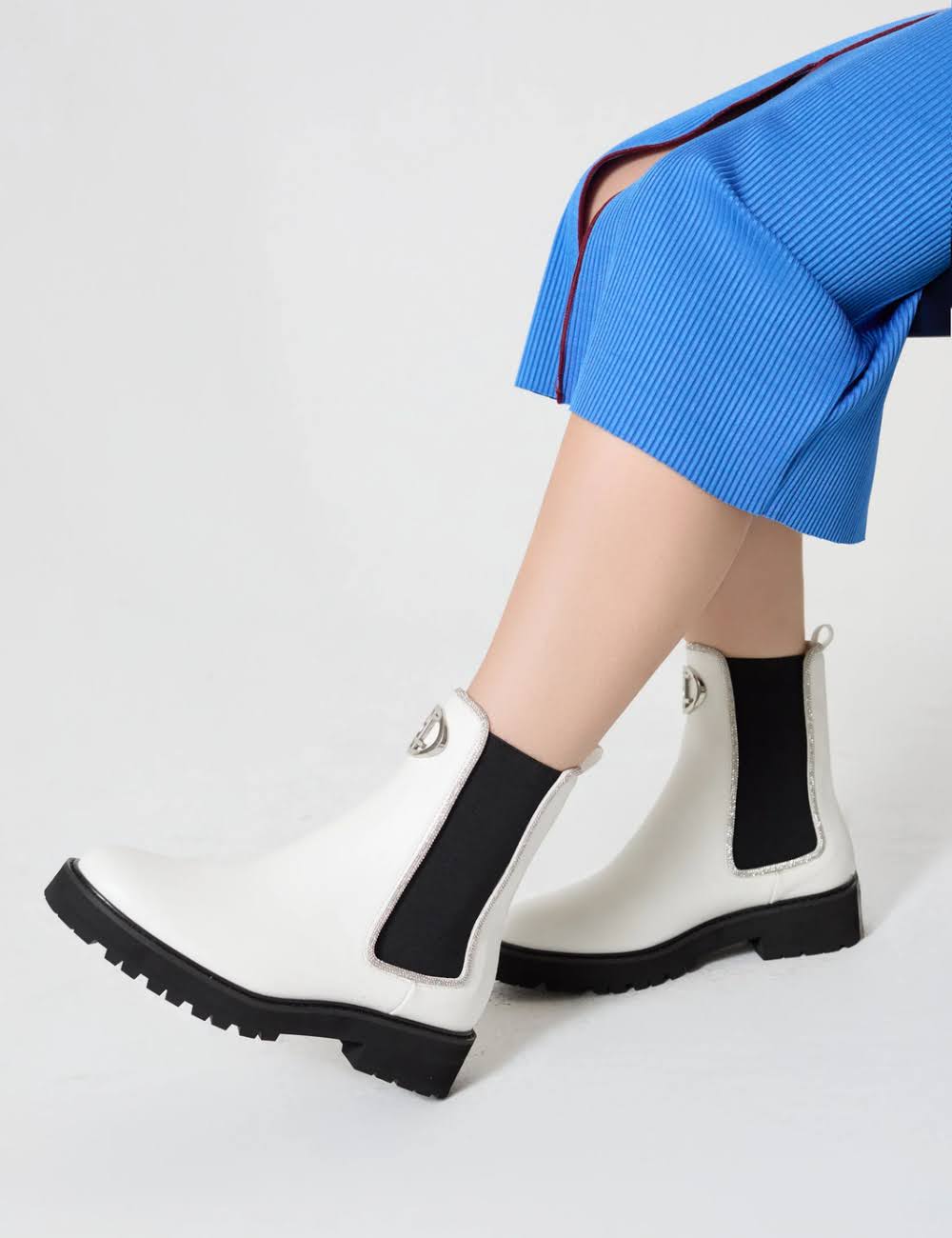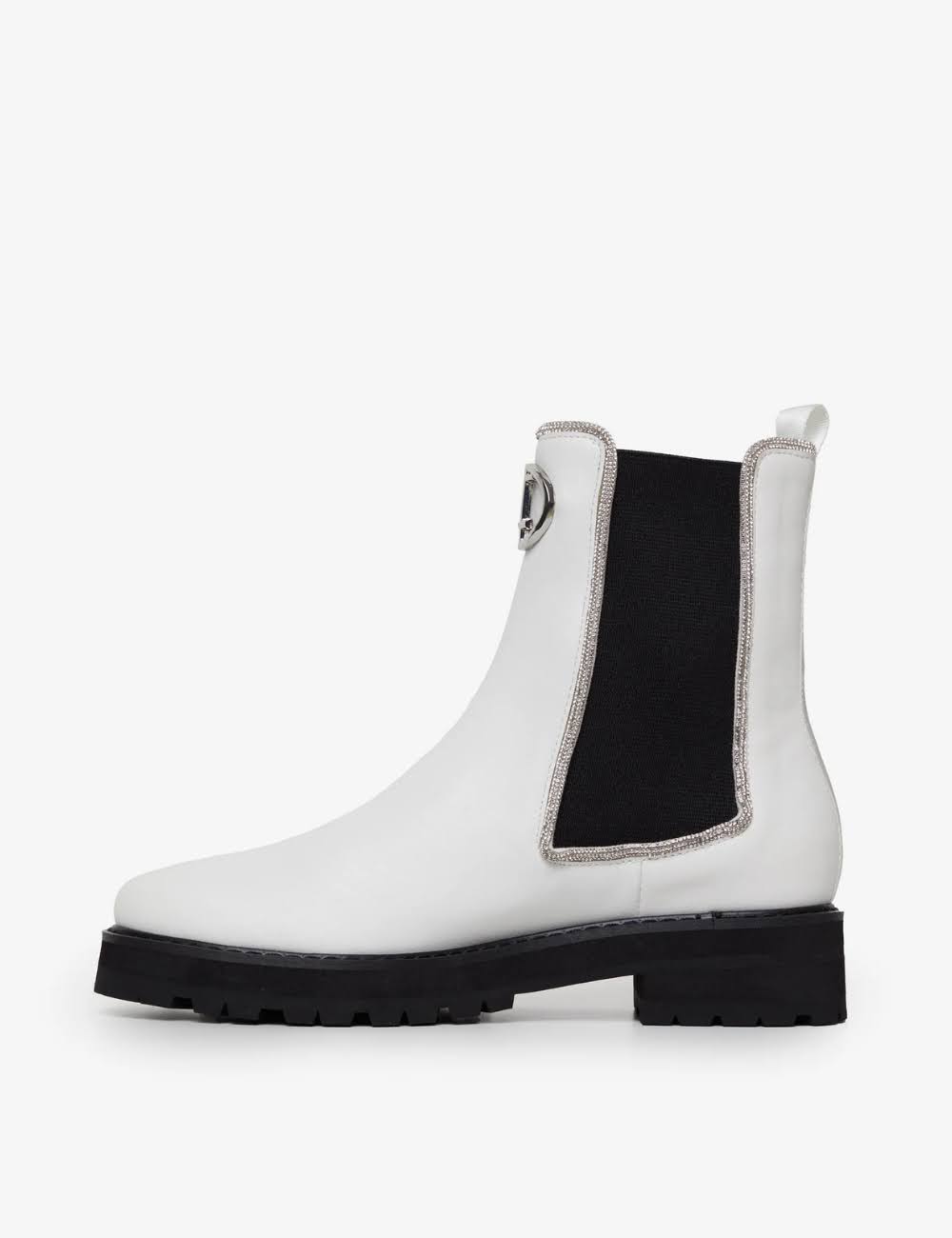 Design Clássico Reinventado: As botas Chelsea, um clássico do guarda-roupa feminino, ganham um toque moderno e sofisticado com os detalhes em costura e a fivela metálica.