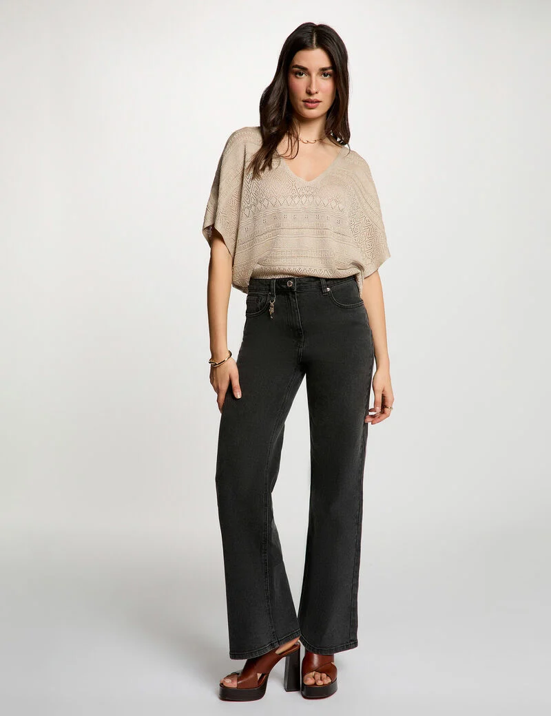 O Crissa Oversized Jumper apresenta uma abordagem moderna ao casual chic. O corte amplo adapta-se a diferentes silhuetas, enquanto o decote em V e as mangas curtas criam uma imagem leve e contemporânea.