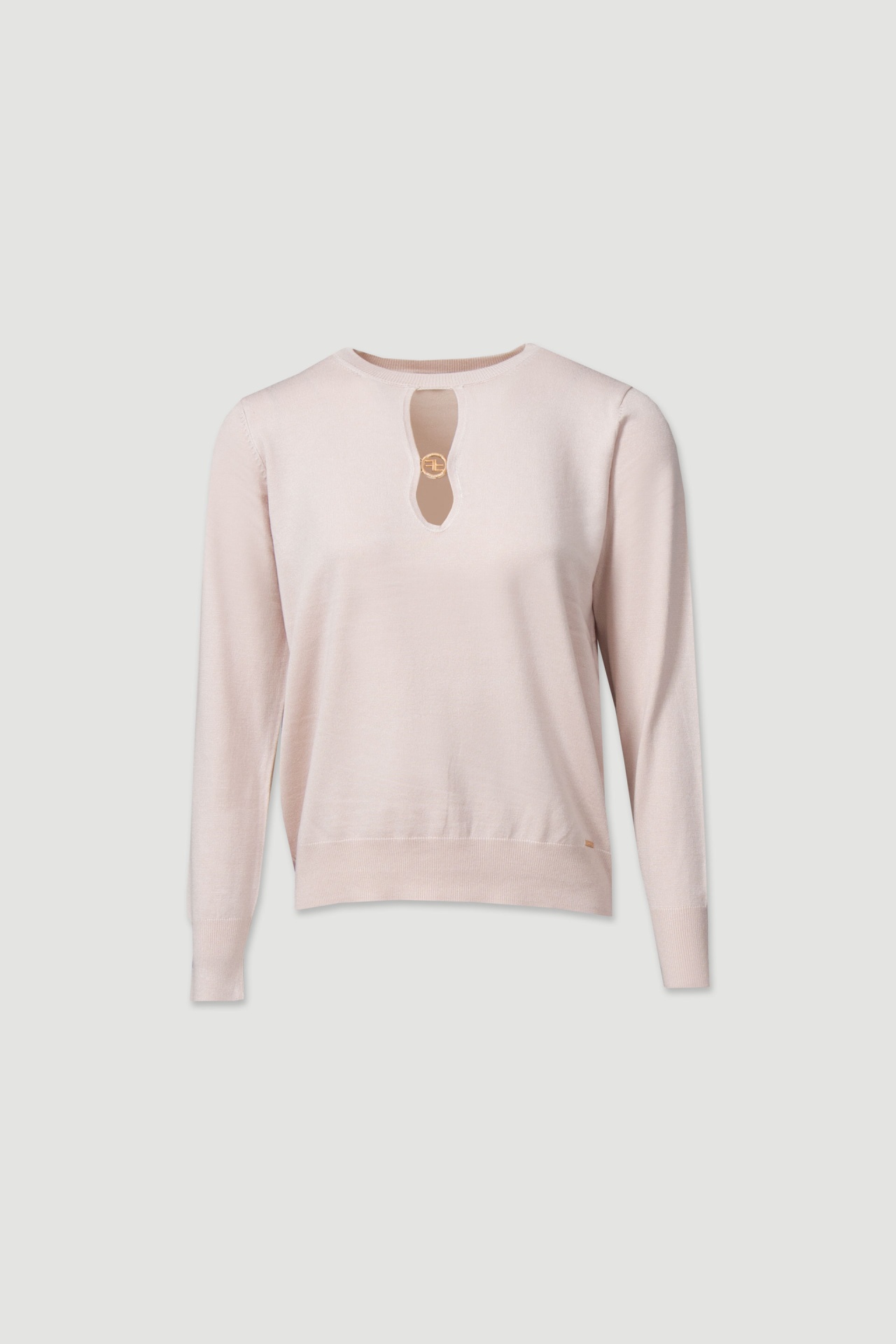 A camisola EVELYN apresenta abertura com aplicação metálica que acrescenta um detalhe sofisticado.