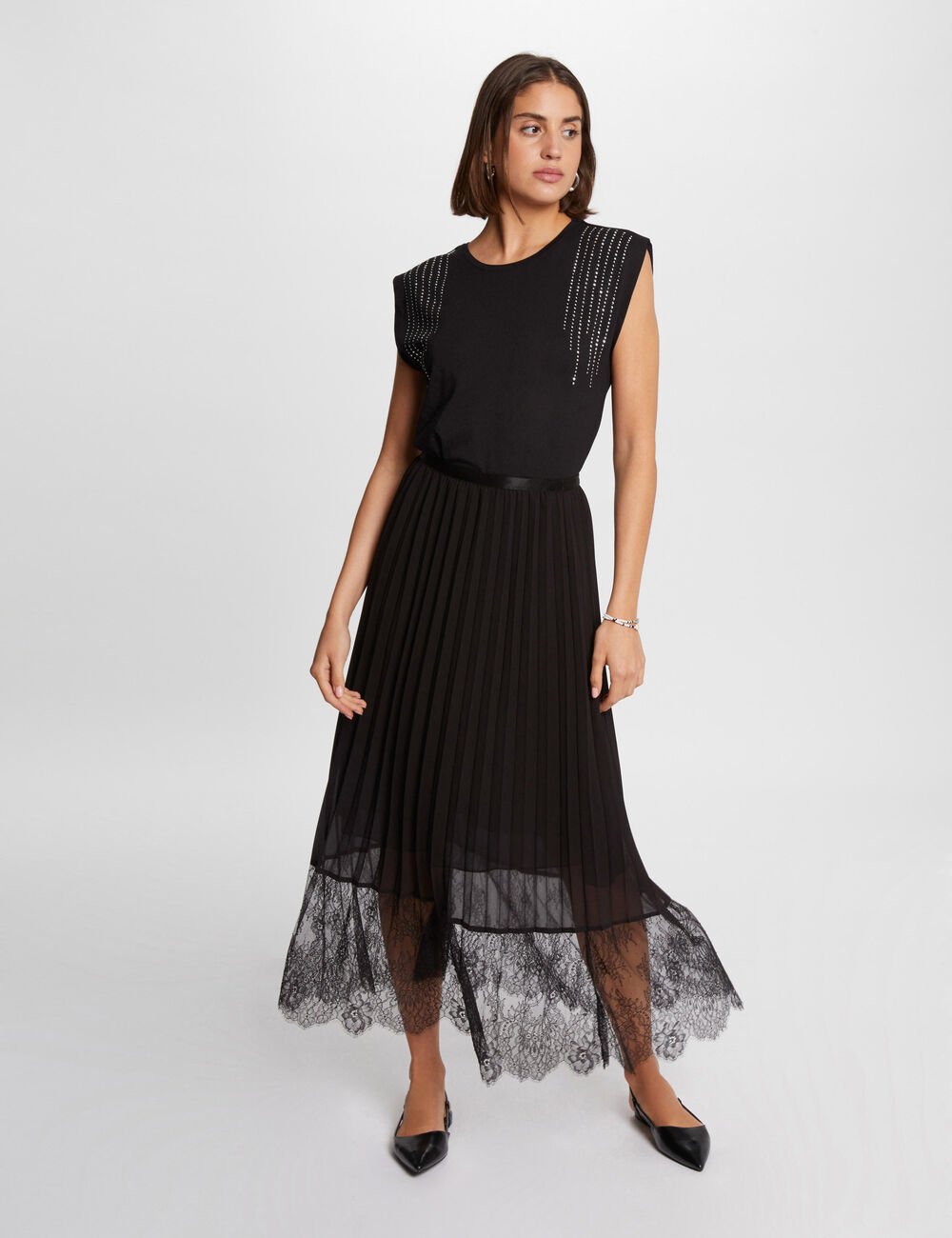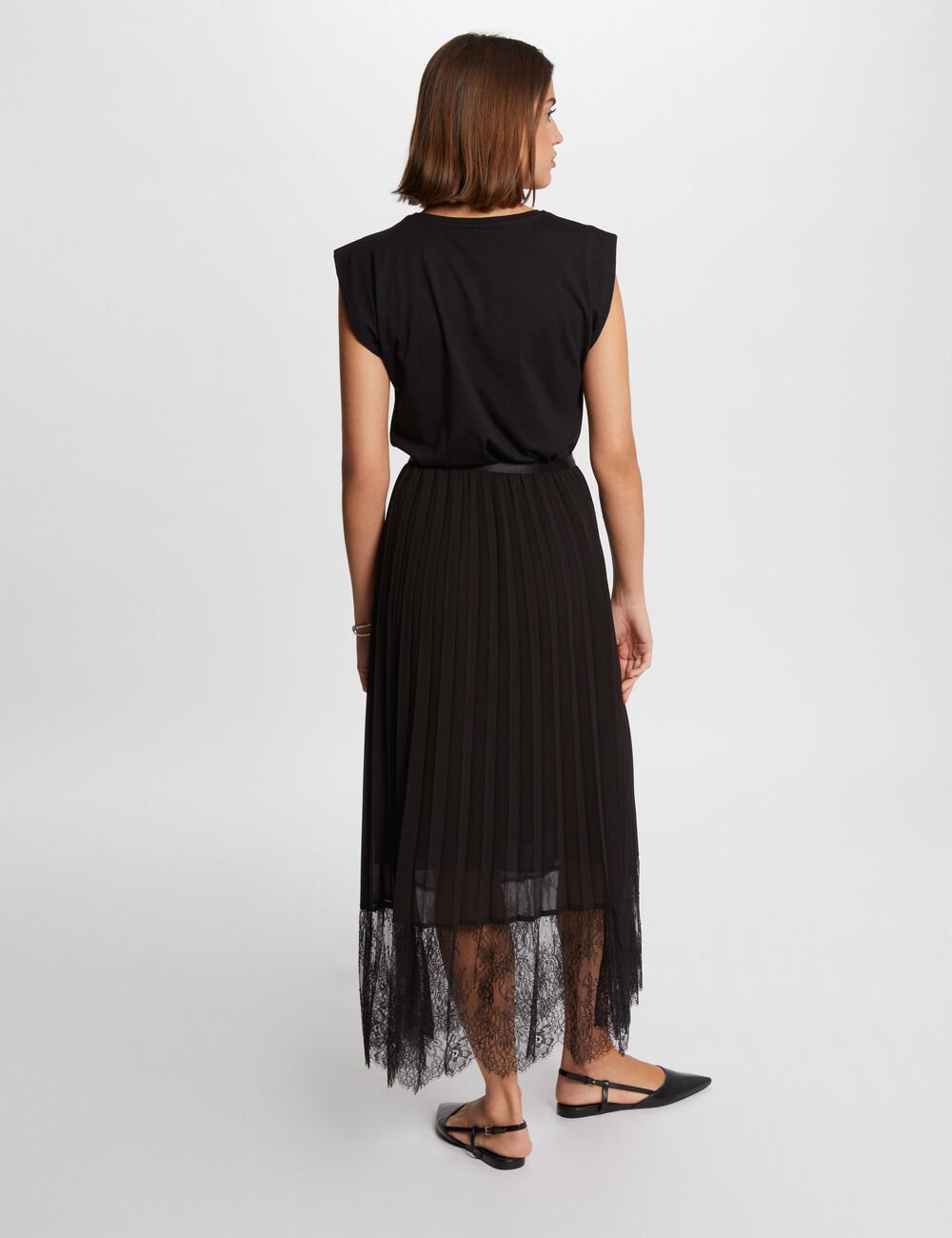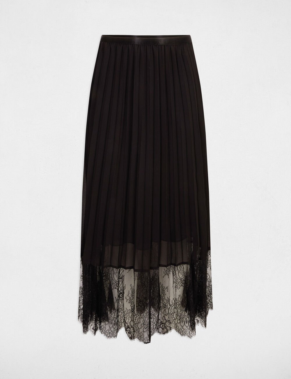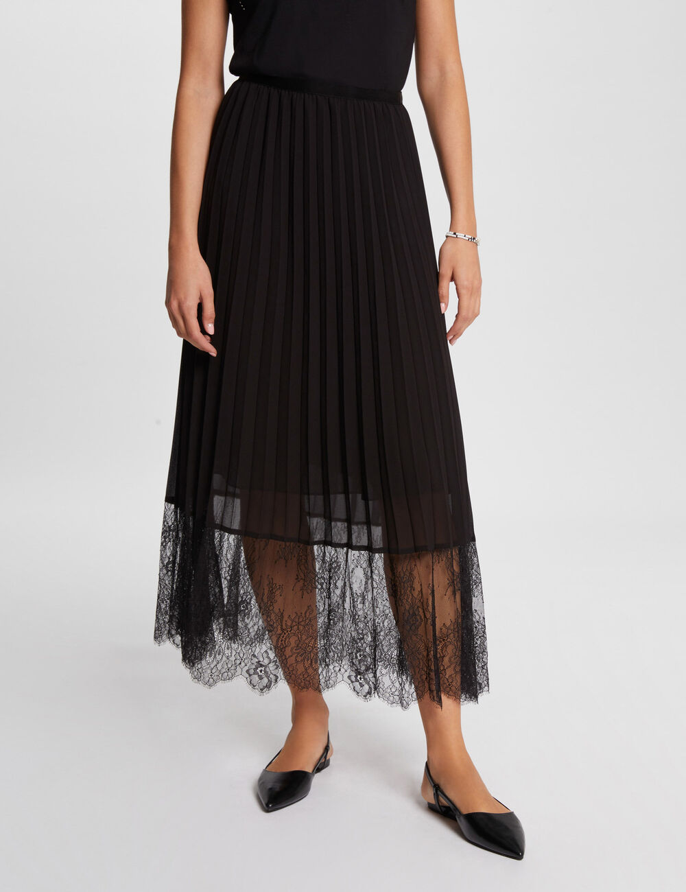 A Jerlan Pleated Maxi Skirt destaca-se pelo movimento elegante do tecido plissado. O corte em A e a cintura subida criam uma silhueta feminina, enquanto a transparência subtil e o acabamento em renda acrescentam delicadeza ao design.