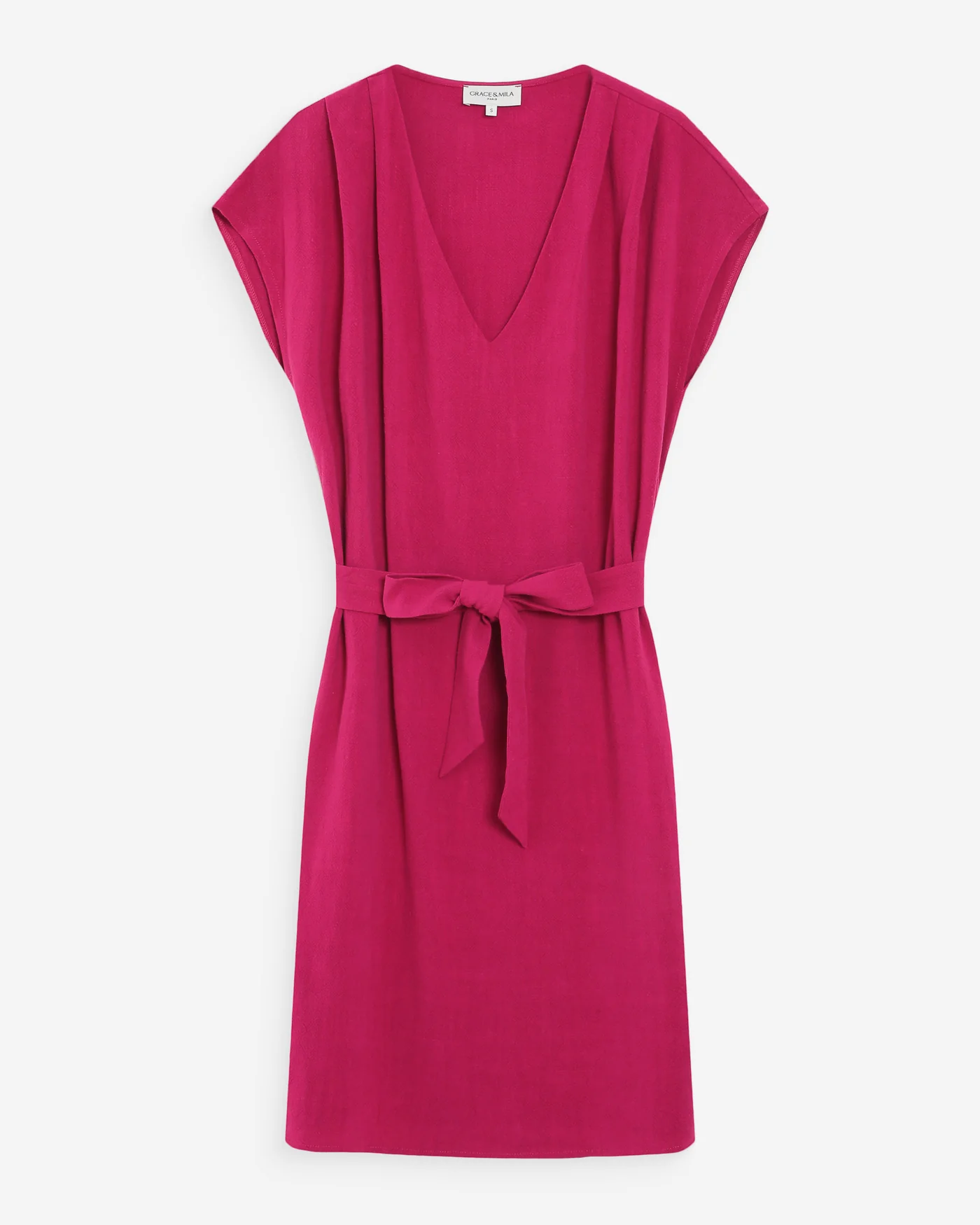 Confeccionado em tecido misto de linho, o vestido curto MARILOU é uma peça feminina e casual. As pregas nos ombros e o cinto removível estruturam a silhueta, enquanto o decote em V valoriza o colo. O tecido leve e fluido cria um visual simples e elegante.