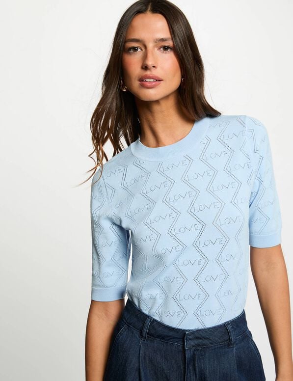 Este pulôver reto intemporal realça todas as morfologias com uma elegância natural. Os detalhes vazados conferem uma feminilidade moderna e delicada a esta peça essencial. O seu estilo chique descontraído, contemporâneo, combina sofisticação e descontração controlada.