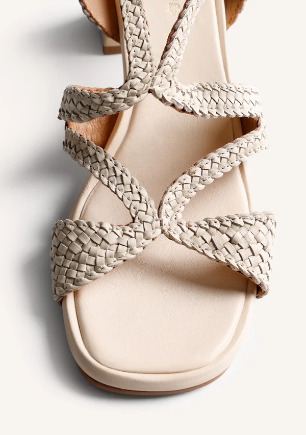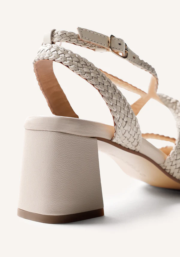 As Mohoro Woven Sandals destacam-se pelo equilíbrio entre elegância e conforto. O couro entrançado e o salto ligeiramente mais alto criam uma silhueta feminina e alongada.
