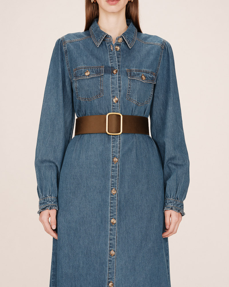 O cinto NELSIE em camurça apresenta um design elegante e intemporal que estrutura a silhueta com naturalidade. Ideal para completar coordenados com sofisticação.