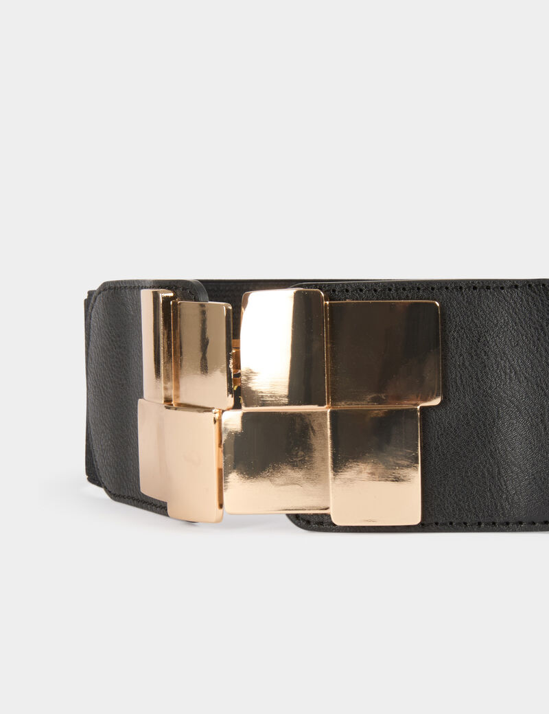 Cinto elástico ajustável com fivelas quadradas na frente.