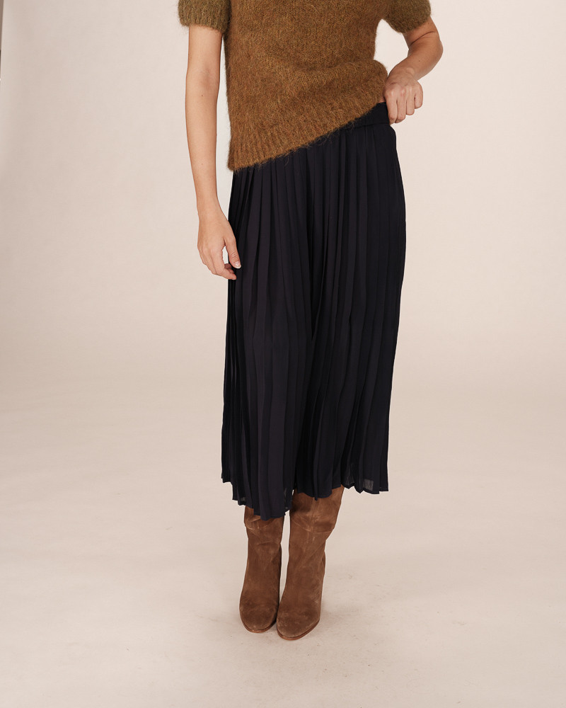 A saia midi PLISSÉ é uma peça atemporal da marca que combina elegância e conforto com seu cós totalmente elástico. O corte reto e a cintura média fazem desta saia um modelo que se adapta a todos os tipos de corpo. As pregas delicadas adicionam movimento e um visual sofisticado, tornando a saia reta PLISSÉ uma peça decididamente feminina.