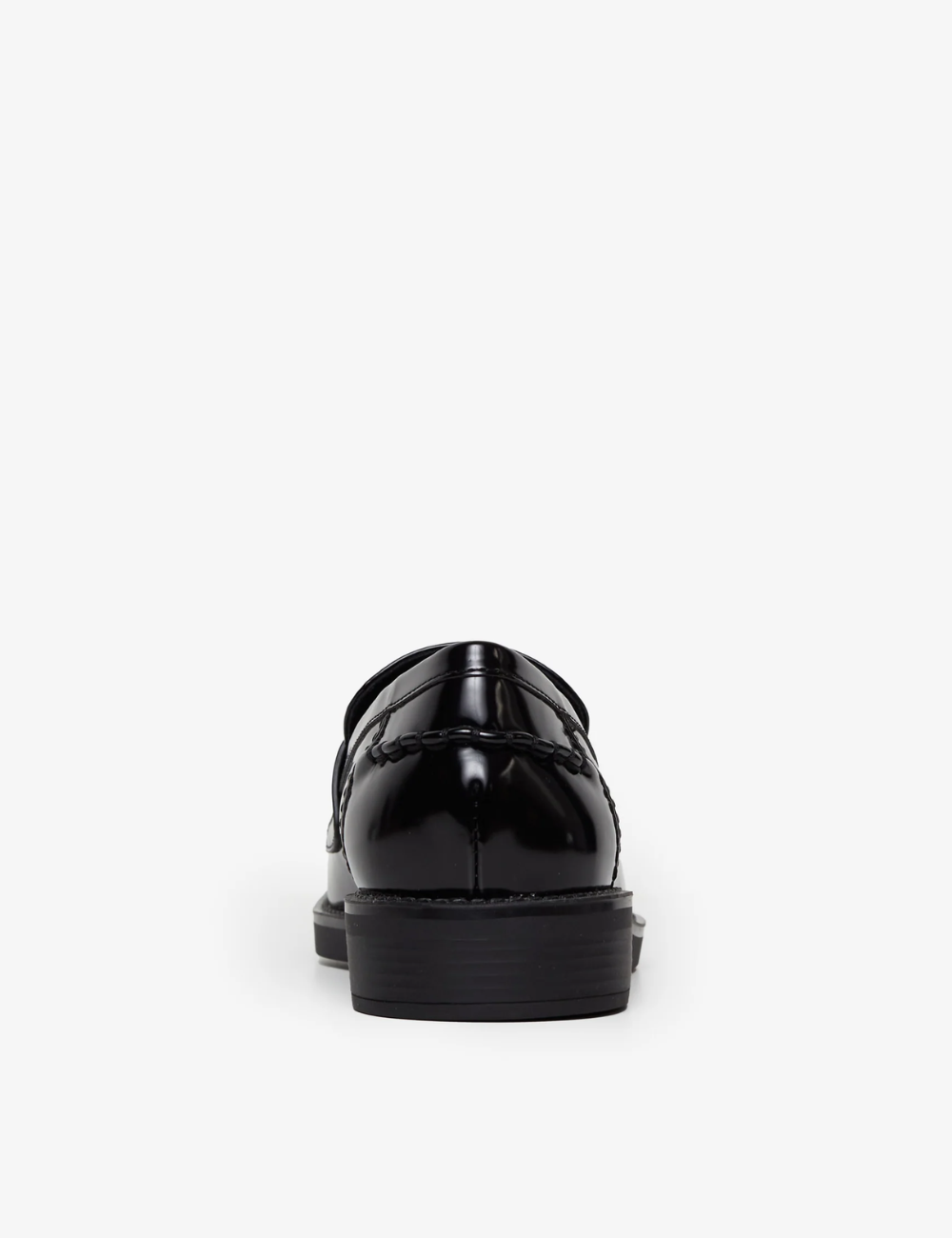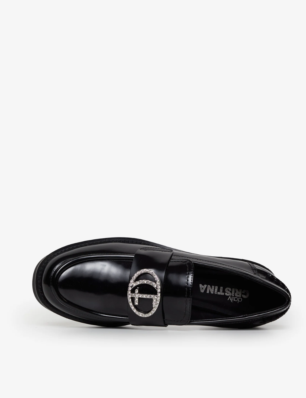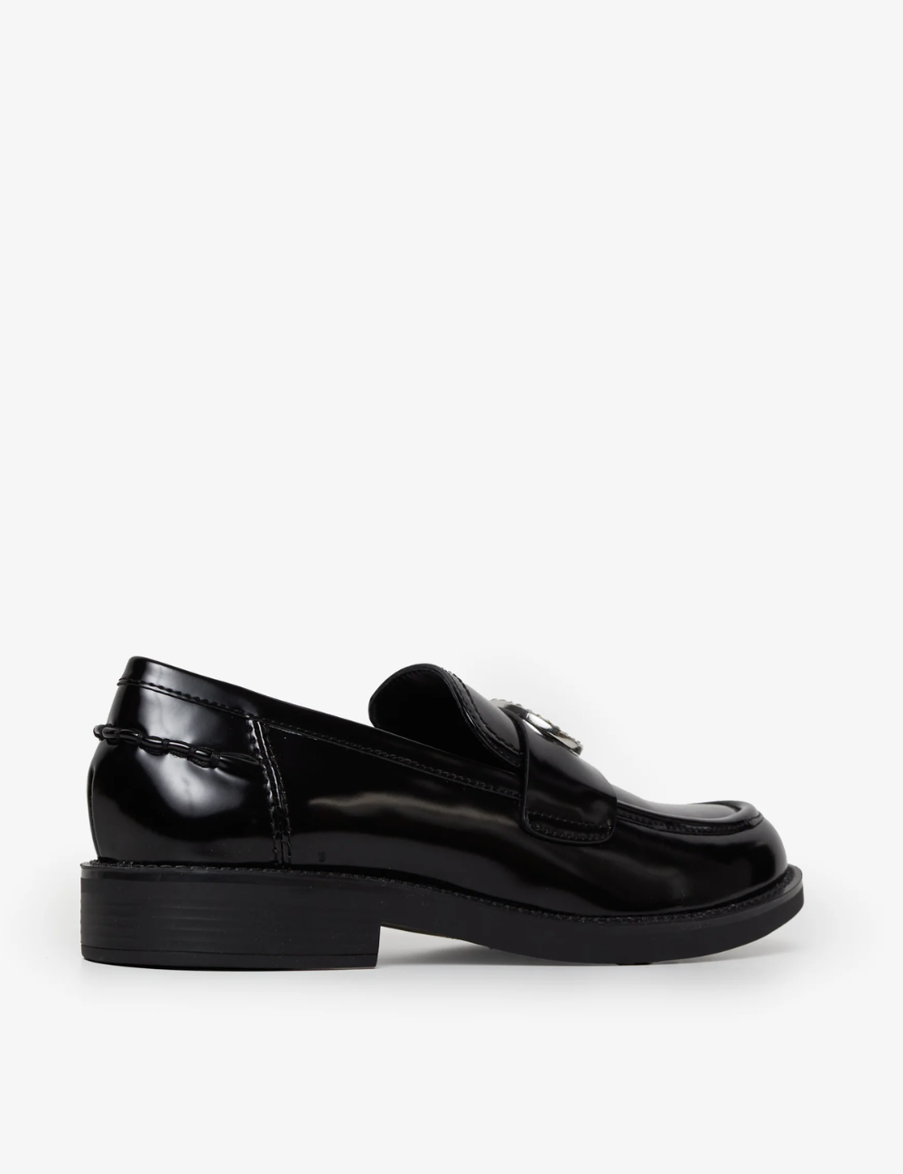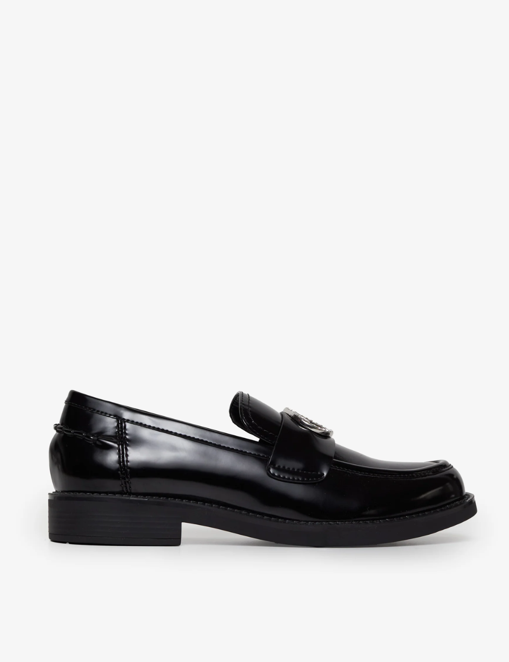 Design atemporal e sofisticado: O mocassin, um clássico do guarda-roupa feminino, ganha um toque moderno e sofisticado com o acabamento em verniz e o detalhe metalizado.