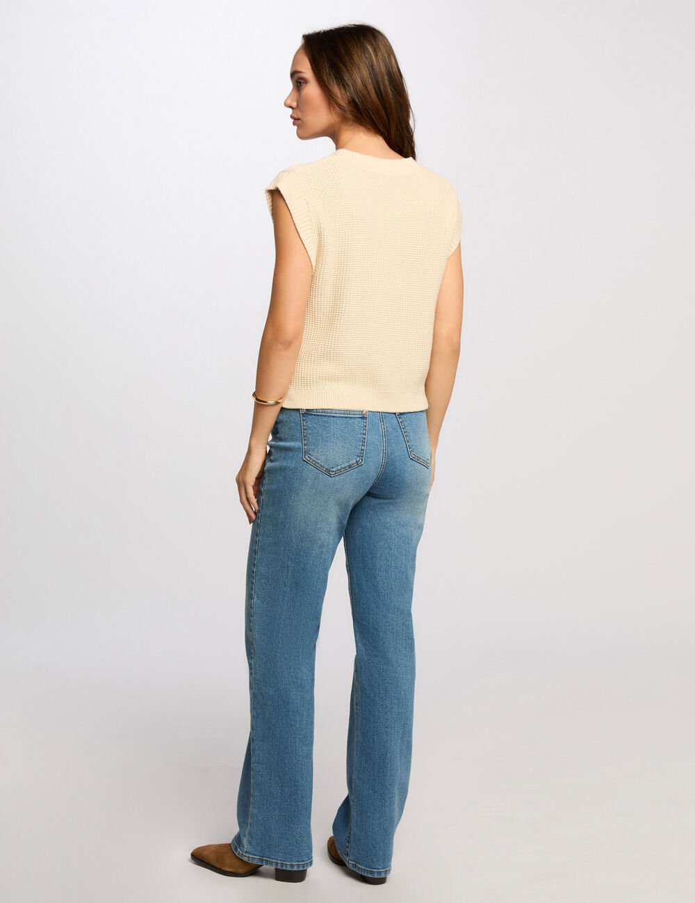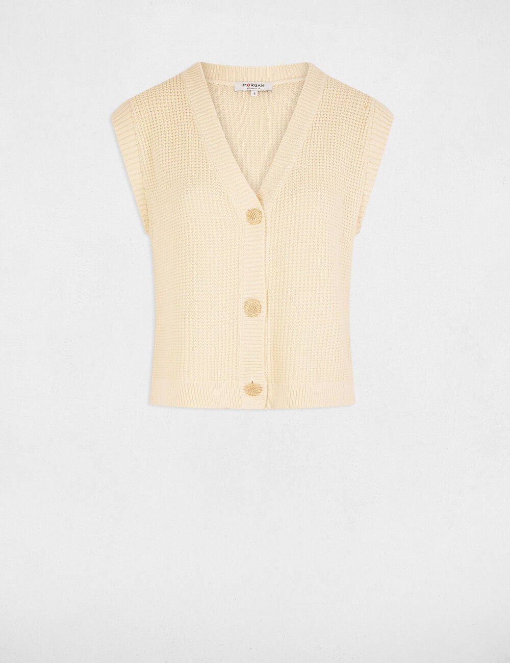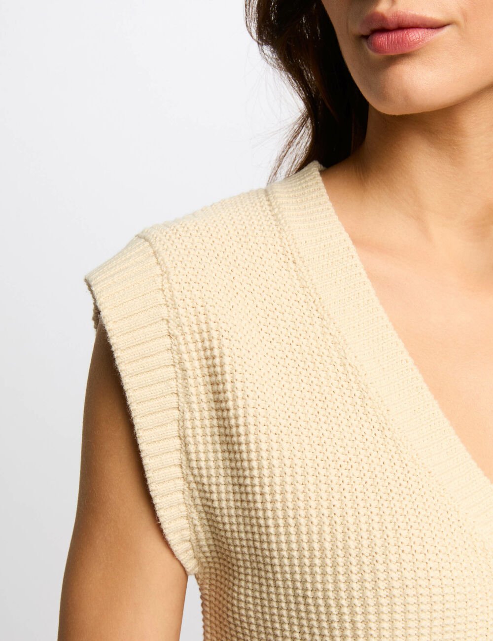 O cardigan ROAD sem mangas apresenta corte direito e design minimalista que combina elegância e versatilidade.