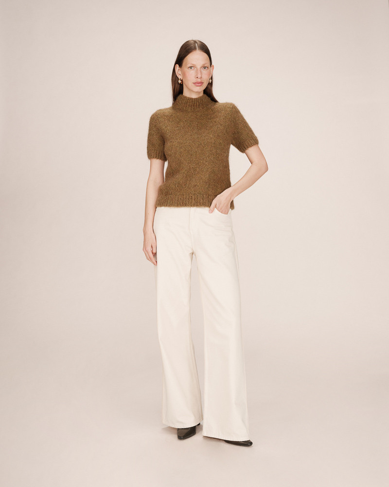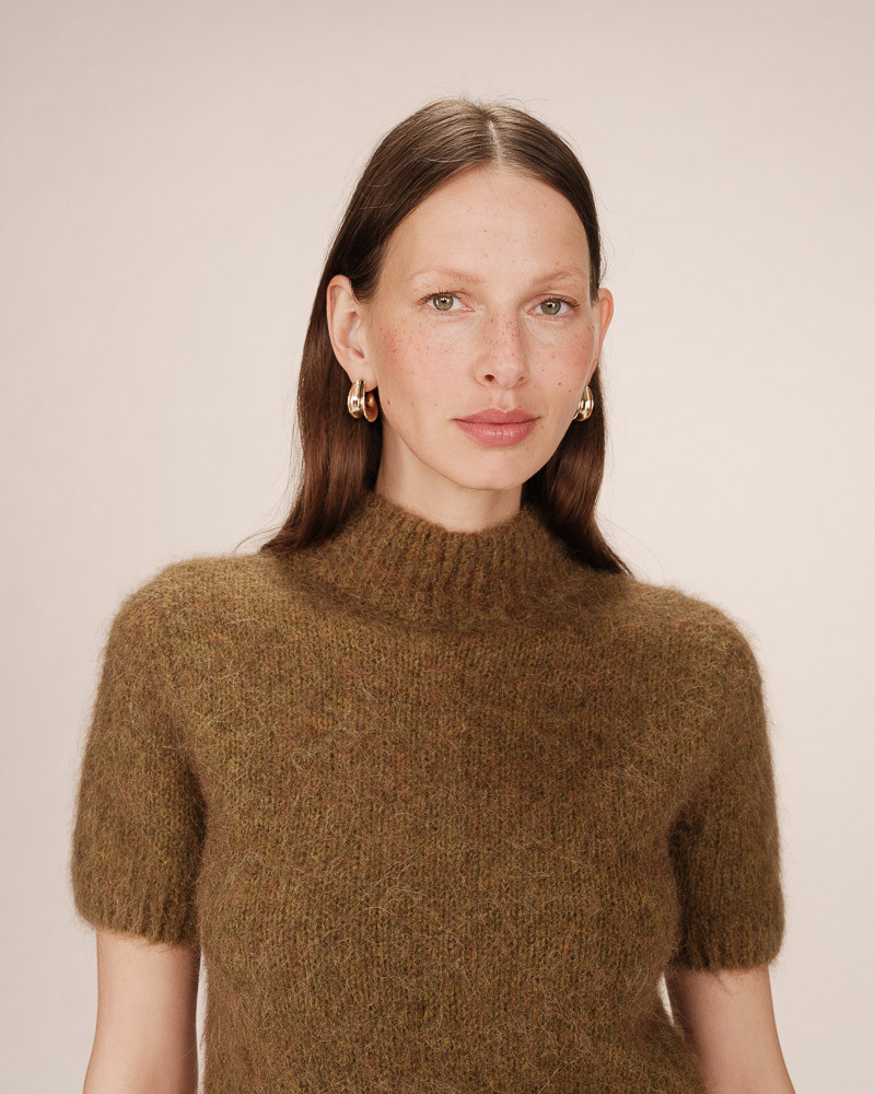 O suéter de manga curta SAULE é confeccionado em uma mistura de lã de alpaca, náilon e viscose, proporcionando um toque macio e delicado. O corte justo e a gola alta acentuam a silhueta com elegância, enquanto os acabamentos canelados adicionam um toque de textura. Discreto e sofisticado, o suéter de lã SAULE é uma adição fácil a qualquer guarda-roupa do dia a dia.