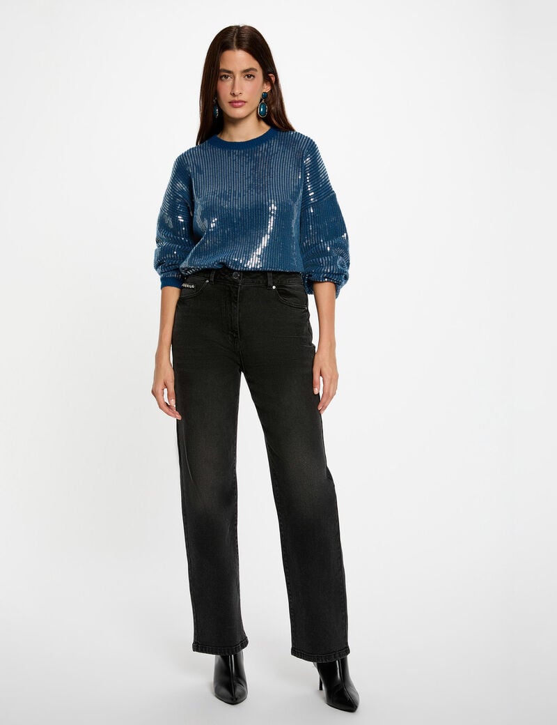 Camisola com corte oversized personifica o equilíbrio perfeito entre modernidade e elegância com seu estilo casual chique. As lantejoulas adicionam um toque luminoso, ideal para dar um toque moderno ao seu look. Atemporal, favorece todos os tipos de corpo, tornando-se uma peça essencial no guarda-roupa feminino.