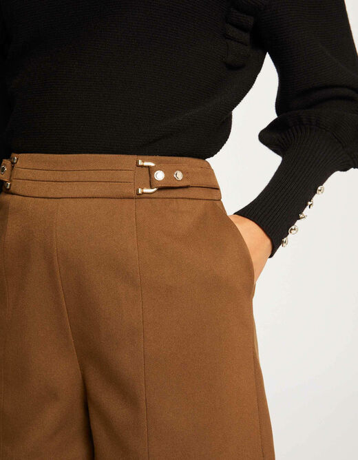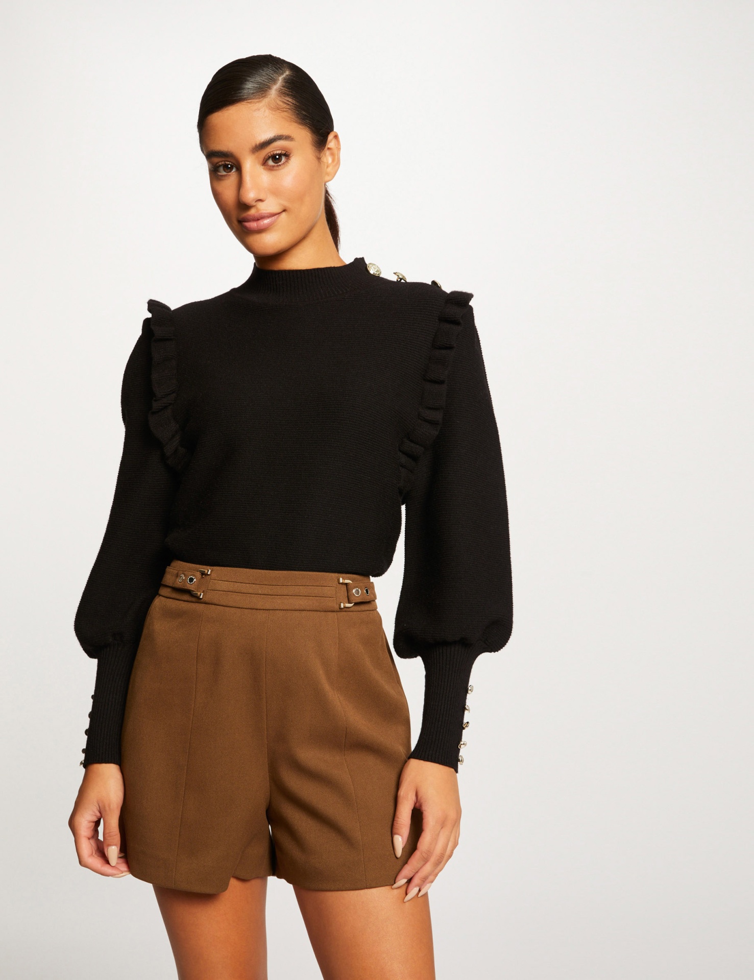 Os Sholky Buckle Waist Shorts apresentam um design elegante com detalhes modernos. As fivelas laterais na cintura acrescentam um toque contemporâneo a esta peça sofisticada.
