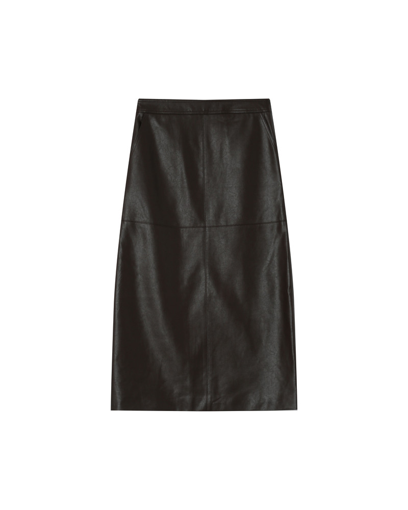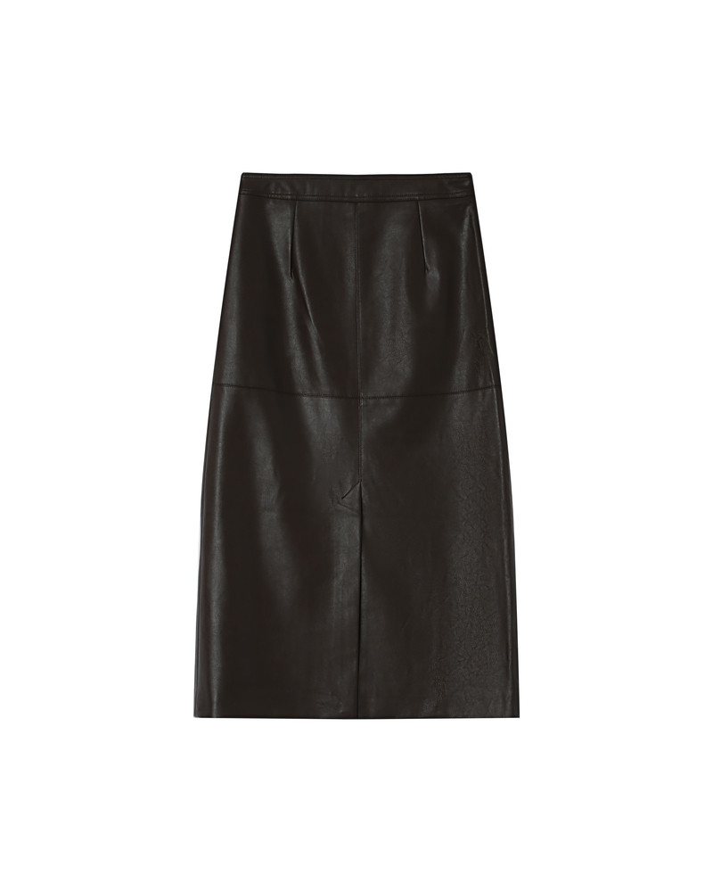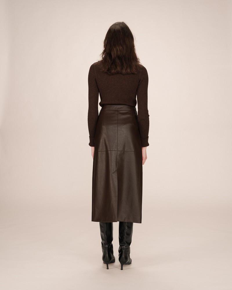A saia midi SIRENE é uma peça confiante e feminina do guarda-roupa Grace & Mila. O corte reto é combinado com um comprimento midi para uma elegância minimalista inspirada em silhuetas clássicas. A saia SIRENE em couro sintético possui fecho de zíper, bolsos italianos na frente e uma fenda nas costas, adicionando conforto e praticidade a esta peça feminina. A saia é forrada.