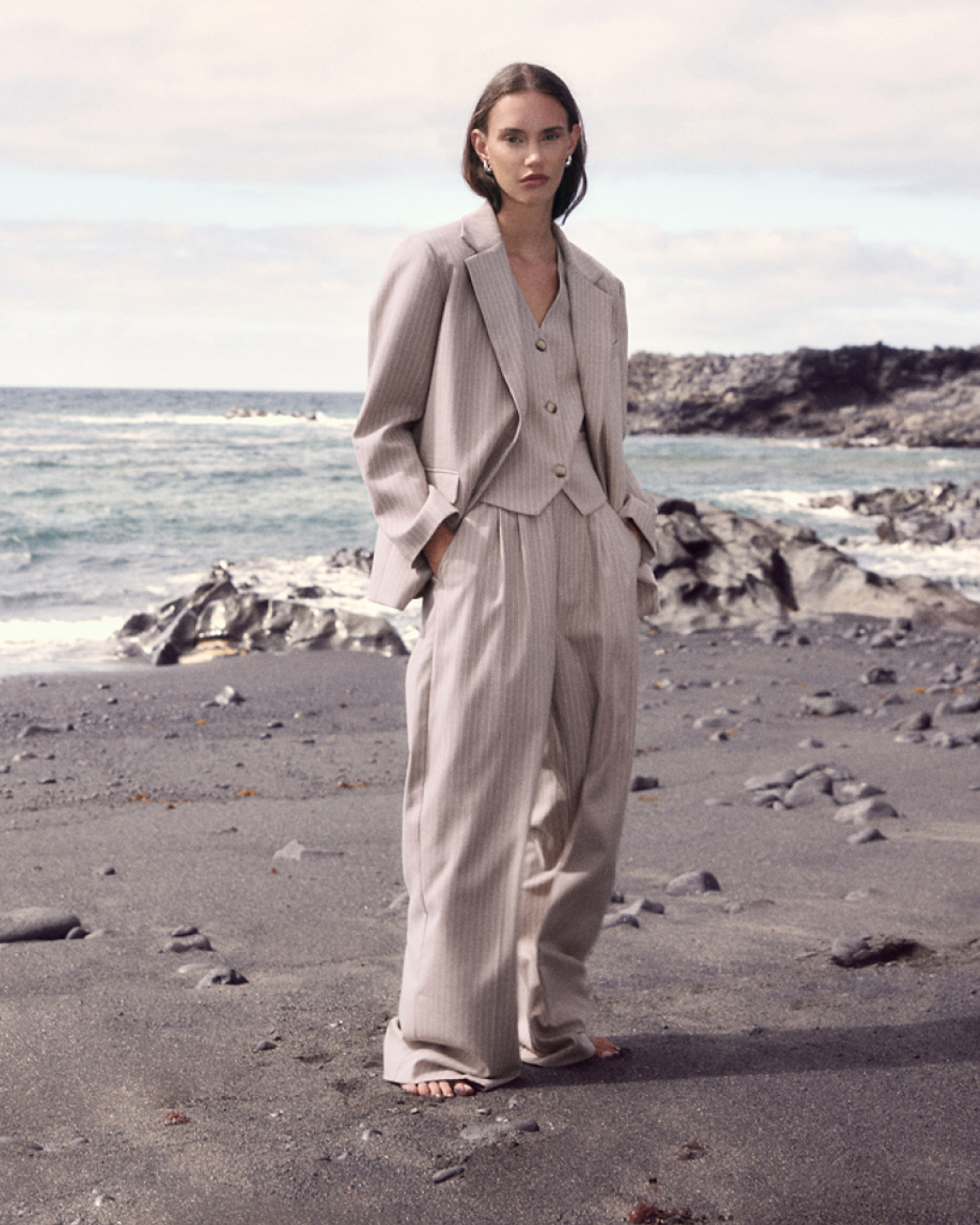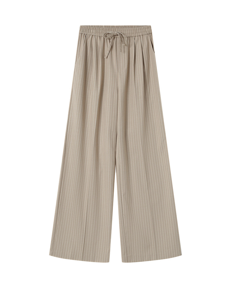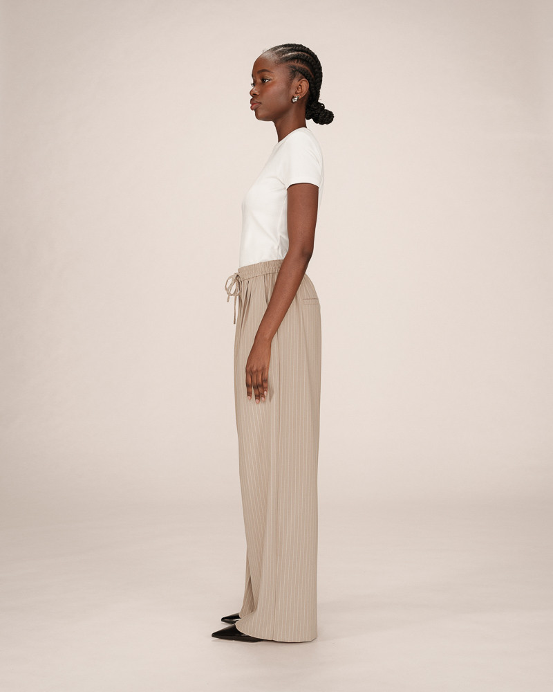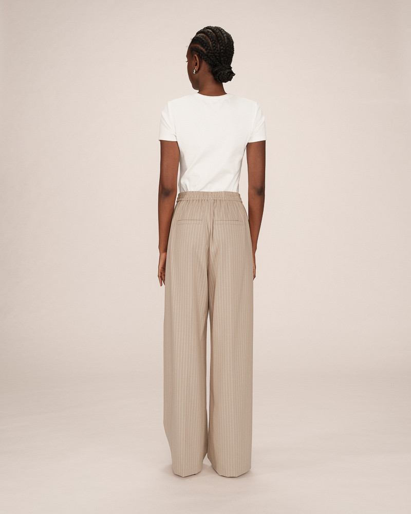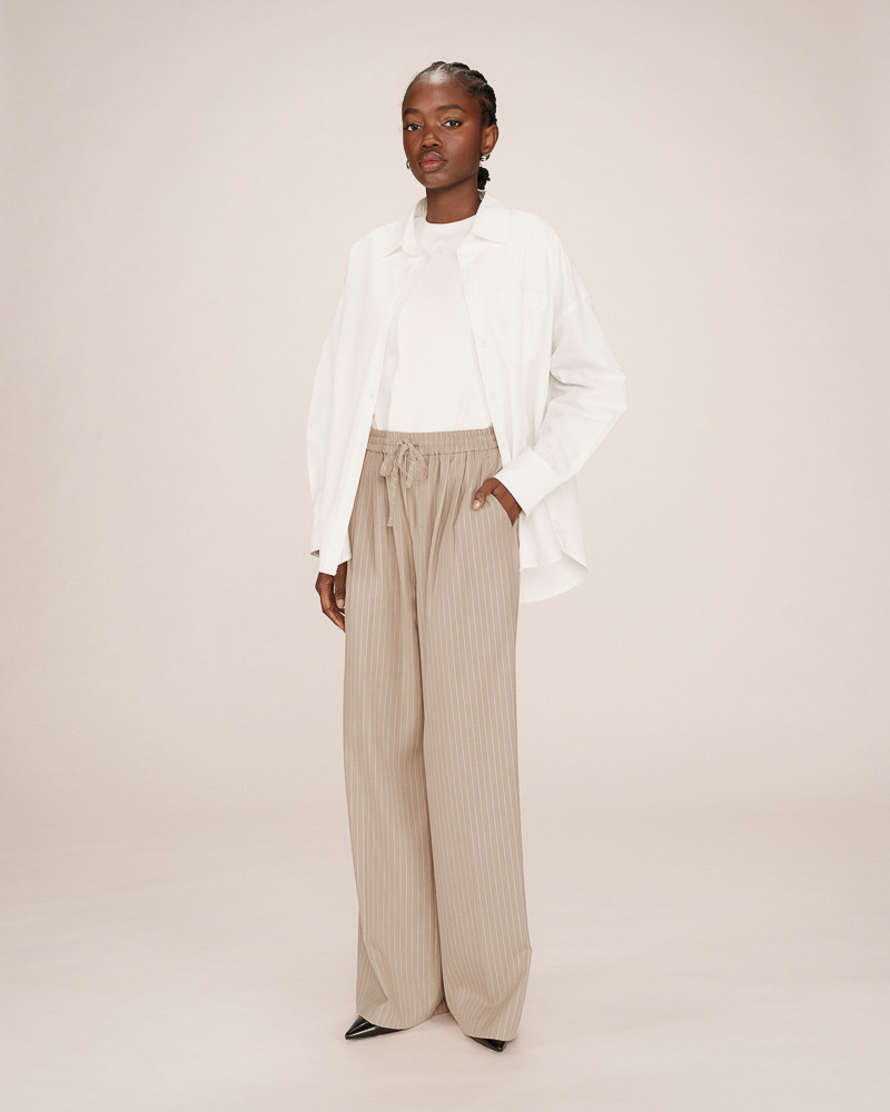 As calças STAY reinterpretam a alfaiataria clássica com uma silhueta descontraída. O tecido listrado e o corte amplo criam um visual moderno e elegante.
