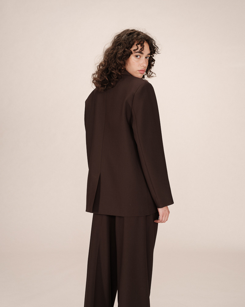 O casaco de alfaiataria STRONG incorpora uma elegância confiante e é inspirado no guarda-roupa masculino. O corte reto e a gola com lapela entalhada criam uma silhueta estruturada e atemporal. Os bolsos com debrum e os botões com efeito chifre adicionam um toque de refinamento discreto. O casaco de alfaiataria STRONG é um item essencial no guarda-roupa de qualquer mulher. O modelo é forrado. Modelo oversized.