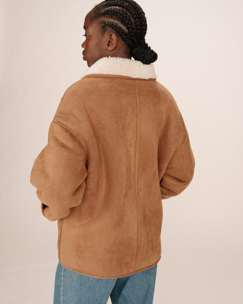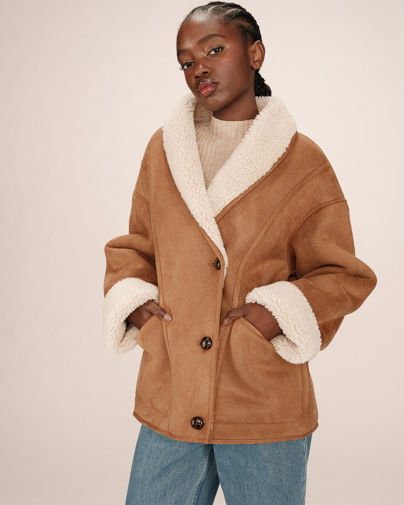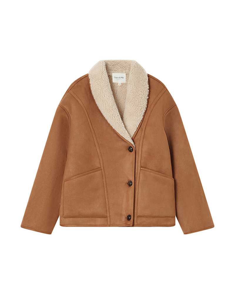 Uma peça essencial nesta temporada, o casaco oversized SWAN é confeccionado em pele de carneiro sintética por dentro e camurça sintética por fora, o que lhe confere um toque macio e aconchegante. O modelo apresenta abotoamento simples na frente, bolsos aplicados na frente e botões contrastantes. O corte oversized do casaco SWAN em pele de carneiro é combinado com uma gola xale e recortes acentuados por acabamentos pespontados para criar um visual moderno e sofisticado.