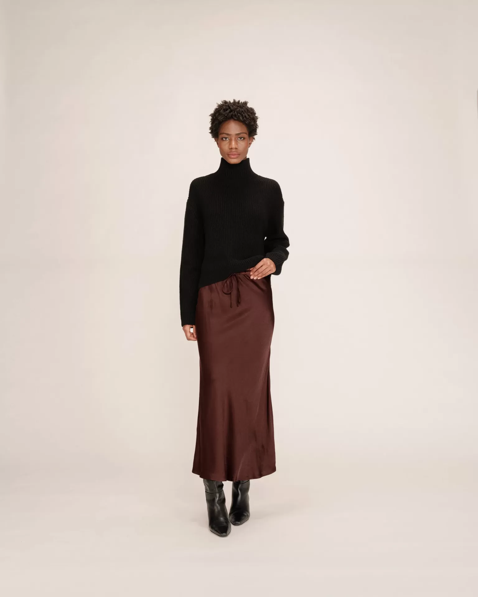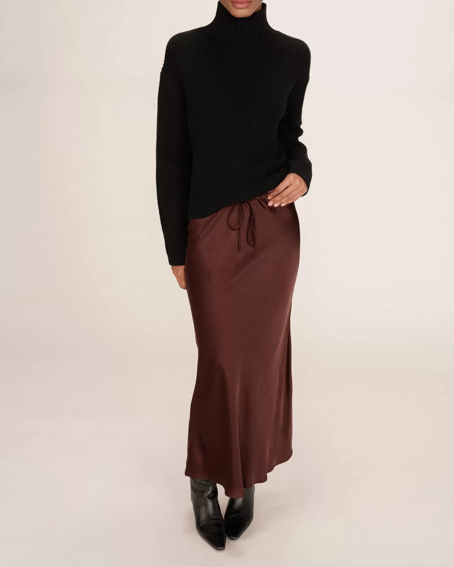 A saia maxi TALMAS é adornada com cetim , criando uma silhueta feminina e delicada. O corte em A e a cintura média favorecem todos os tipos de corpo. A saia de cetim TALMAS possui cós ajustável com cordão na frente para maior conforto.