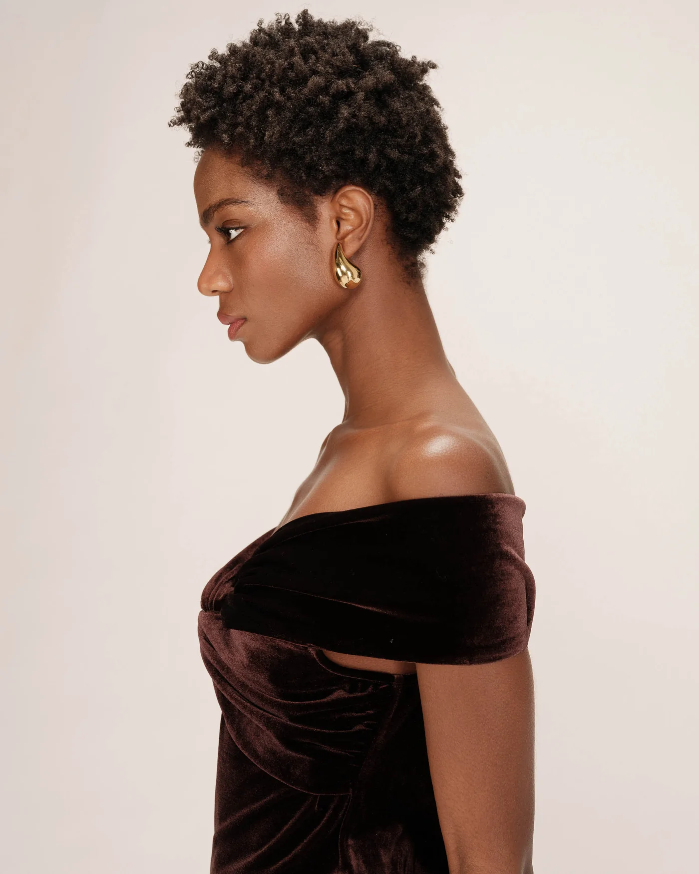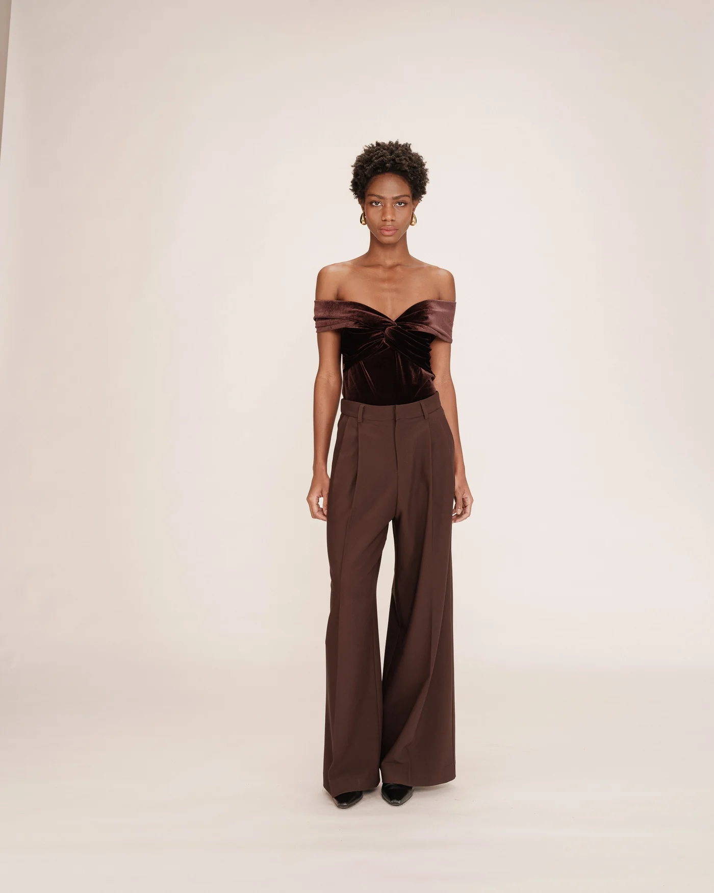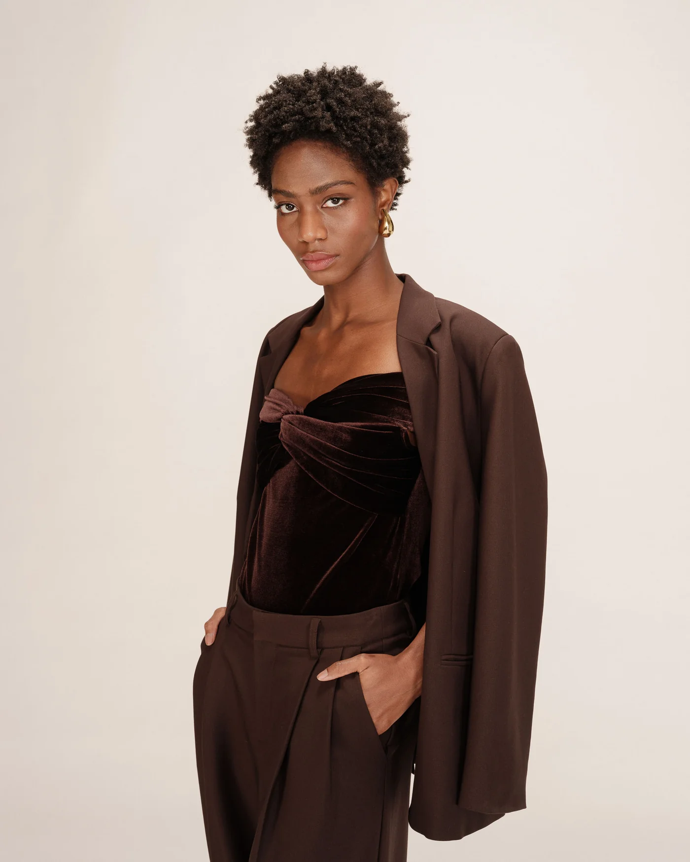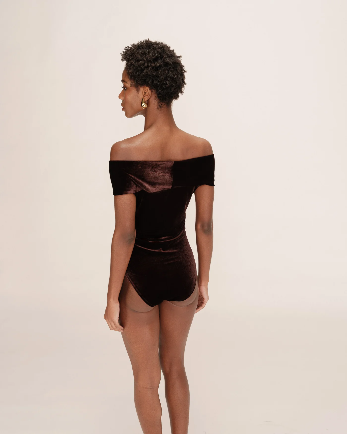O tecido aveludado do body ajustado TIMEON é combinado com um detalhe torcido no decote para criar uma peça com um toque distintamente feminino. A blusa TIMEON sem mangas revela os ombros, proporcionando uma silhueta elegante e sofisticada. A peça apresenta um efeito drapeado e um corte ajustado que valoriza as curvas femininas.