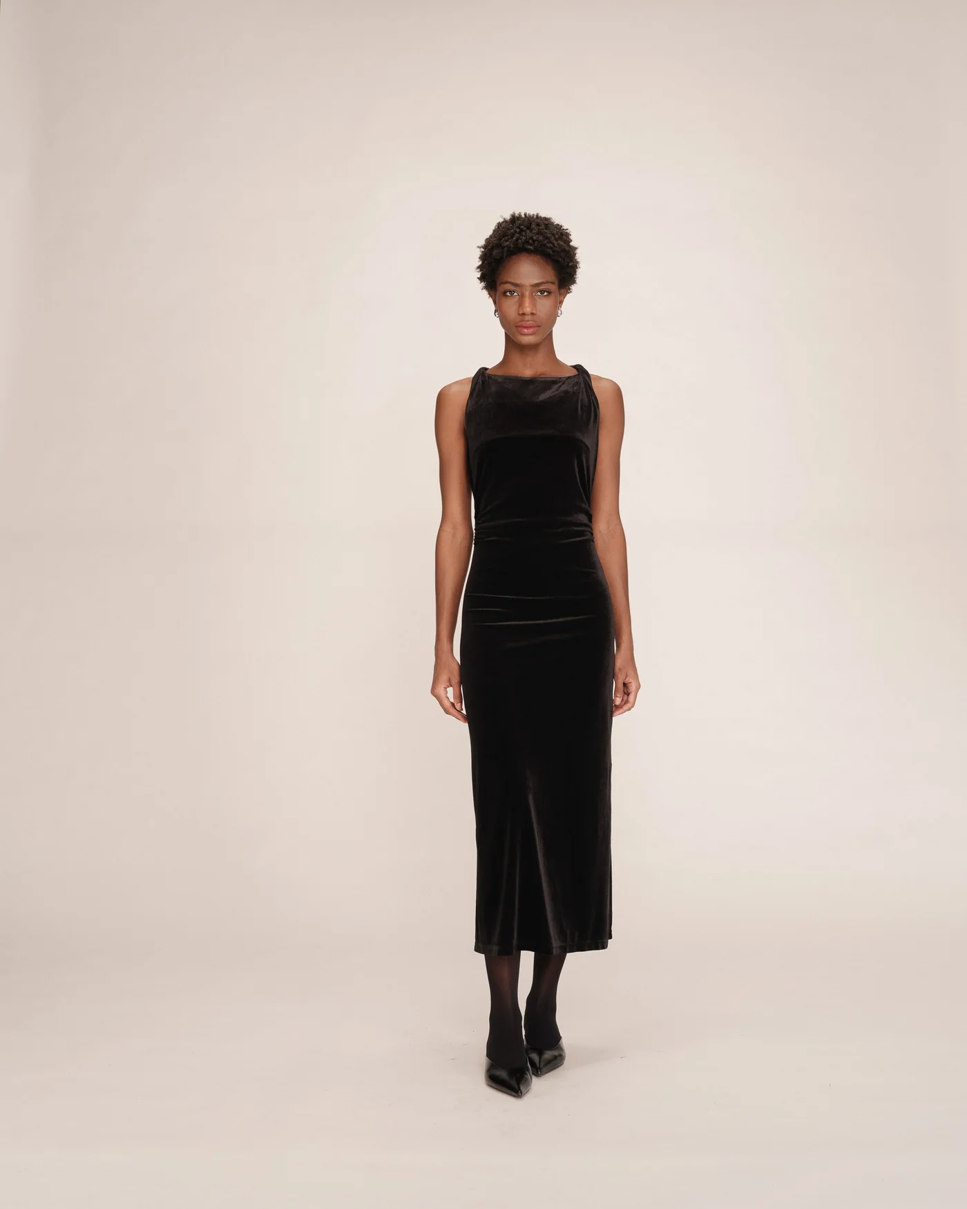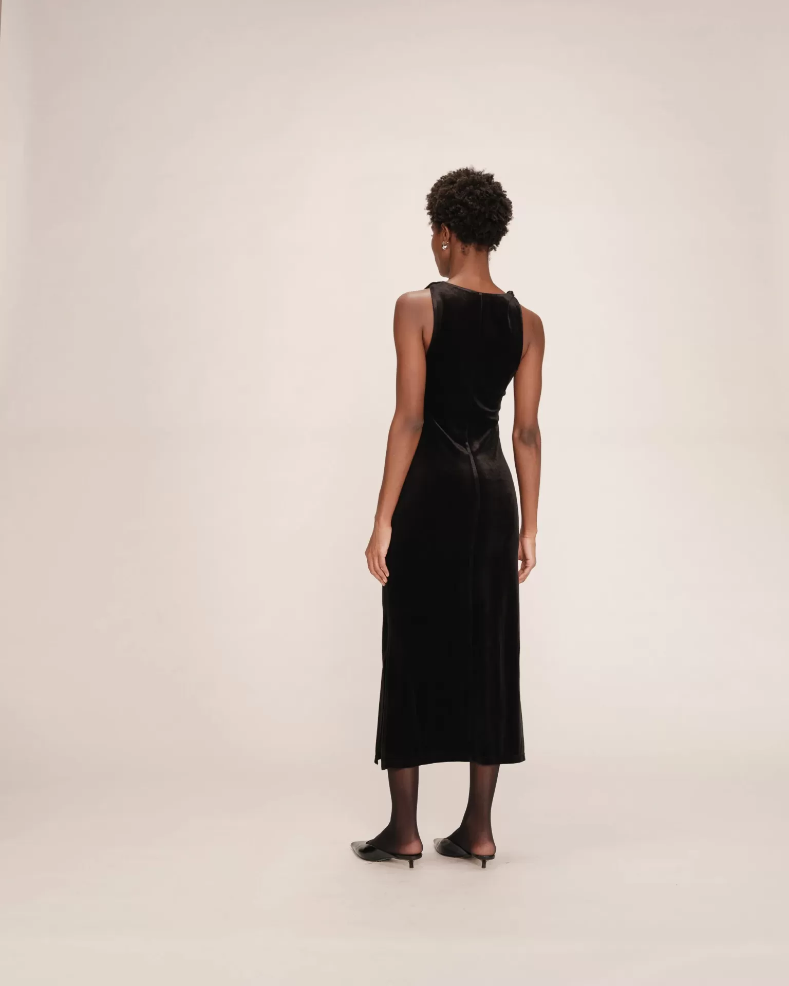 Os elementos clássicos do vestido de veludo TIVOLI , como o decote canoa e o comprimento midi, são combinados com uma silhueta ajustada e detalhes torcidos para um visual feminino e moderno. Confeccionado em veludo, o vestido maxi TIVOLI é valorizado por franzidos na cintura que adicionam movimento à figura.