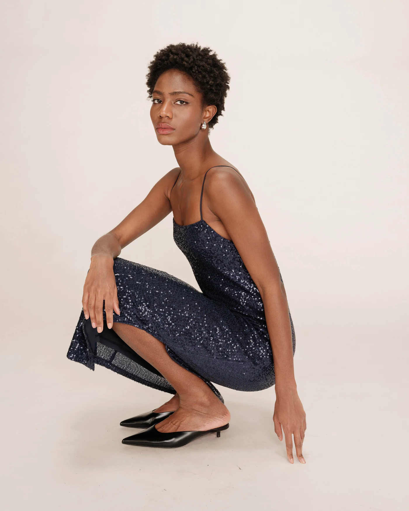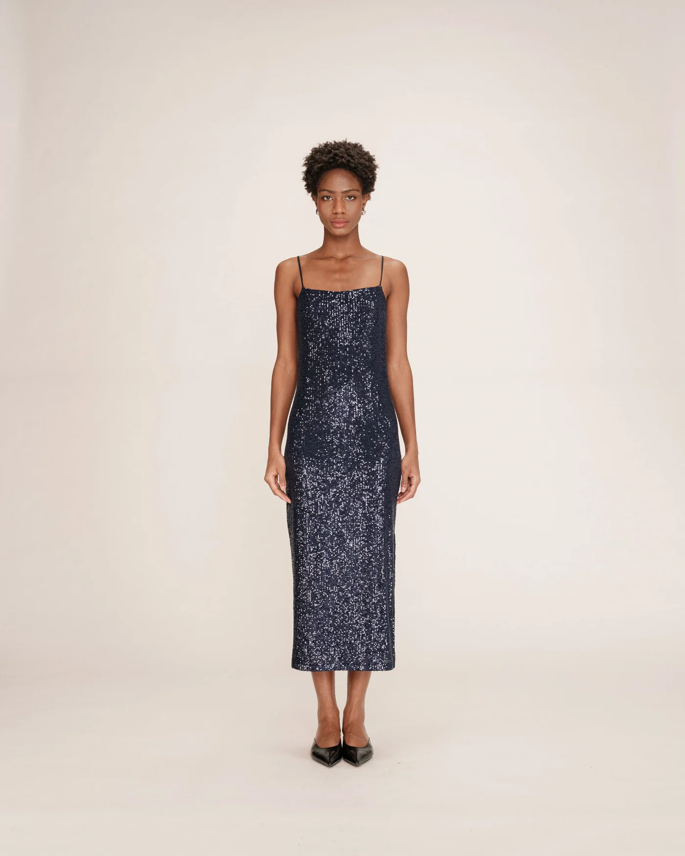 O vestido maxi TORI é indispensável nesta temporada. Confeccionado em lantejoulas, o vestido possui uma silhueta ajustada e uma fenda na barra, conferindo-lhe um toque feminino inconfundível. O modelo conta com alças finas e ajustáveis e decote redondo, favorecendo todos os tipos de corpo.