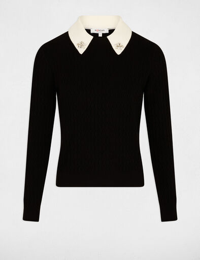 Uma camisola de malha que esbanja elegância sofisticada. Possui uma gola moderna com lapela que realça sutilmente o estilo, enquanto os detalhes de joias decorativas adicionam um toque luminoso e precioso. O seu corte valoriza a silhueta, realçando delicadamente as curvas, e seu design cropped acentua a cintura para um efeito ultrafeminino.