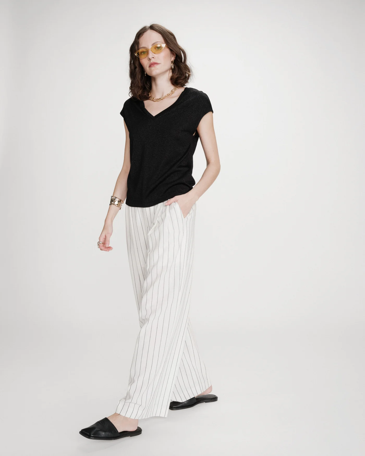 A blusa de manga curta VALSONS é confeccionada em lurex, proporcionando uma silhueta elegante e luminosa. Com mangas curtas e decote em V que valoriza as curvas femininas, a blusa VALSONS em lurex oferece um visual simples e descontraído com seu corte reto.