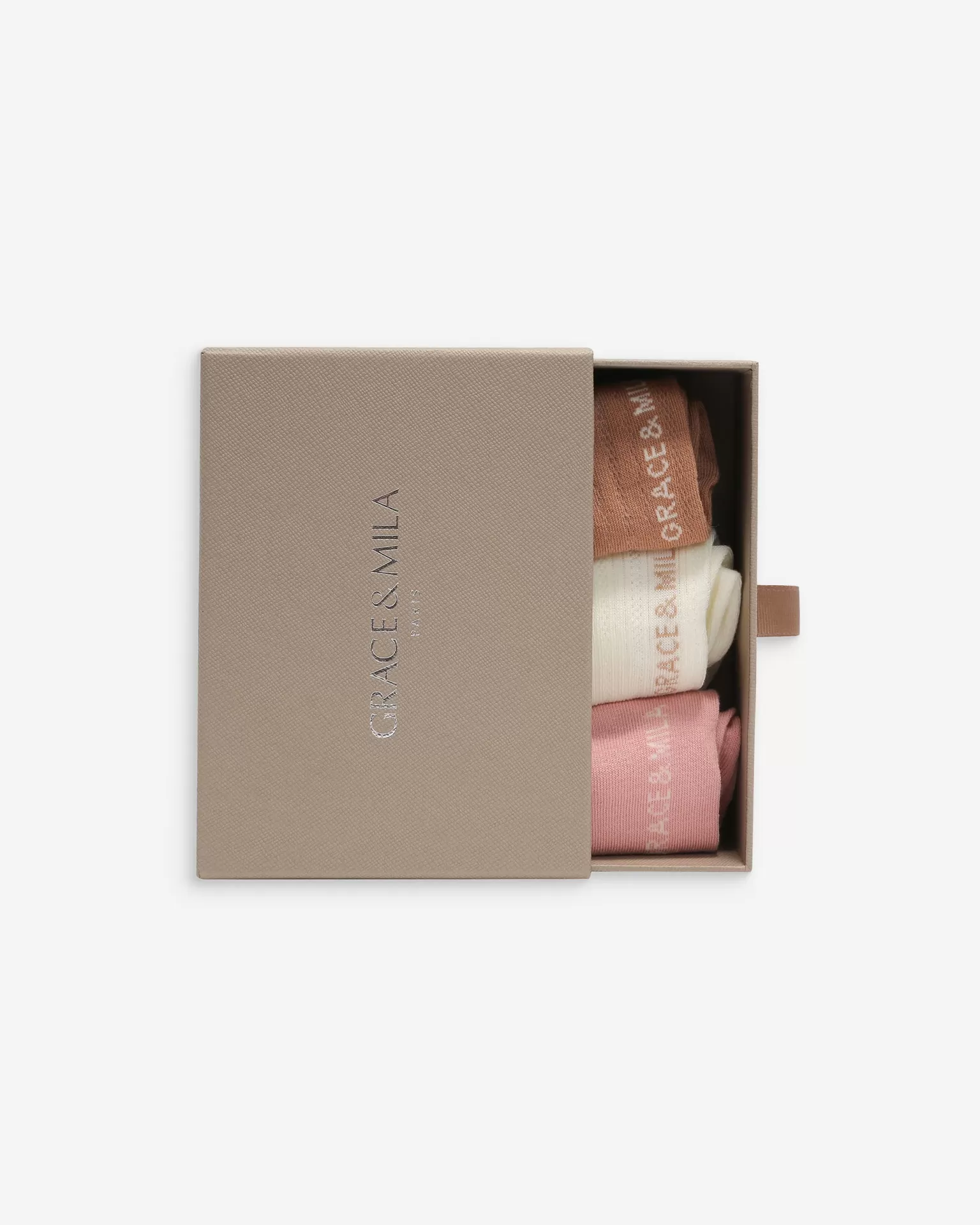 As meias VERA de cano médio são feitas de malha canelada colorida e exibem o logotipo da Grace & Mila. As meias VERA são cuidadosamente embaladas em uma caixa elegante e minimalista. Elas completam a coleção de acessórios da Grace & Mila.