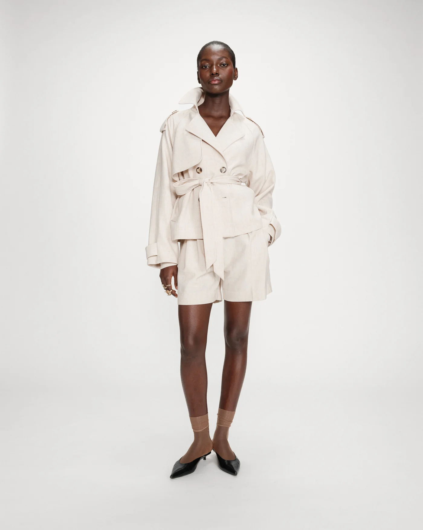 Os shorts sociais VITE têm um corte reto, combinando um visual estruturado com conforto. As pregas bem definidas, os passadores de cinto e os bolsos discretos criam uma silhueta refinada. O cós elástico e o fechamento com zíper e gancho dos shorts retos VITE permitem um ajuste personalizado para todos os tipos de corpo.