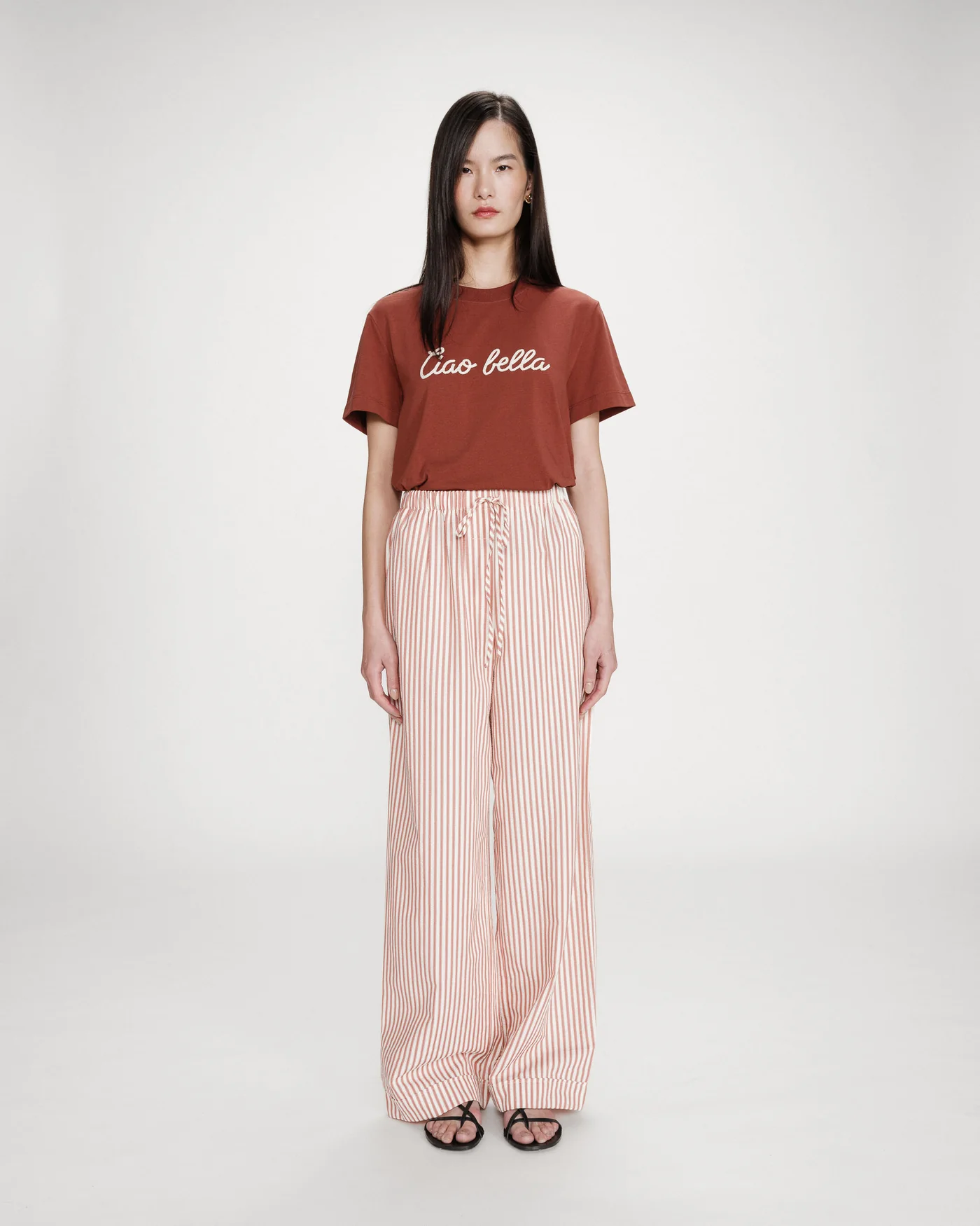 As calças VOLUTE com padrão de riscas são uma peça leve e moderna para a estação. O corte amplo e a cintura elástica criam uma silhueta descontraída, enquanto os bolsos inclinados acrescentam funcionalidade ao design.