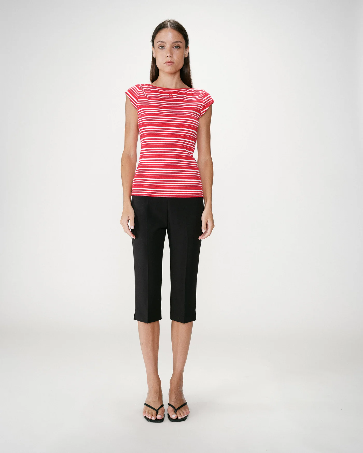 Confeccionada em malha canelada de algodão com elasticidade, adapta-se ao corpo com conforto, tornando-se uma peça versátil para o dia a dia.