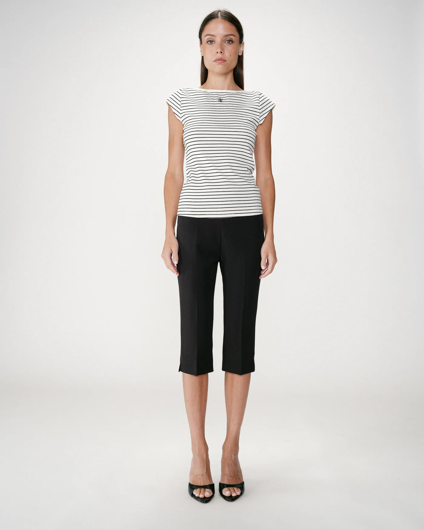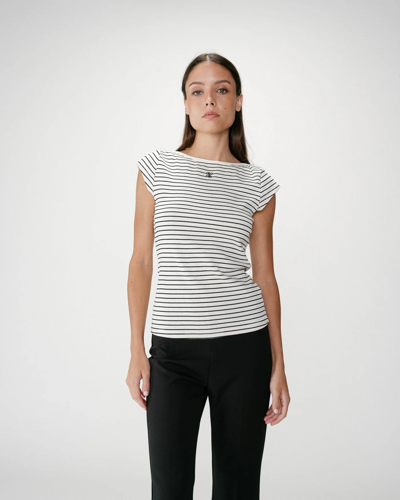 A Wake Striped T-Shirt combina simplicidade e sofisticação num design intemporal. O corte ajustado e o decote barco valorizam a silhueta com delicadeza, enquanto o padrão às riscas e o bordado subtil “G&M” acrescentam um toque distintivo.