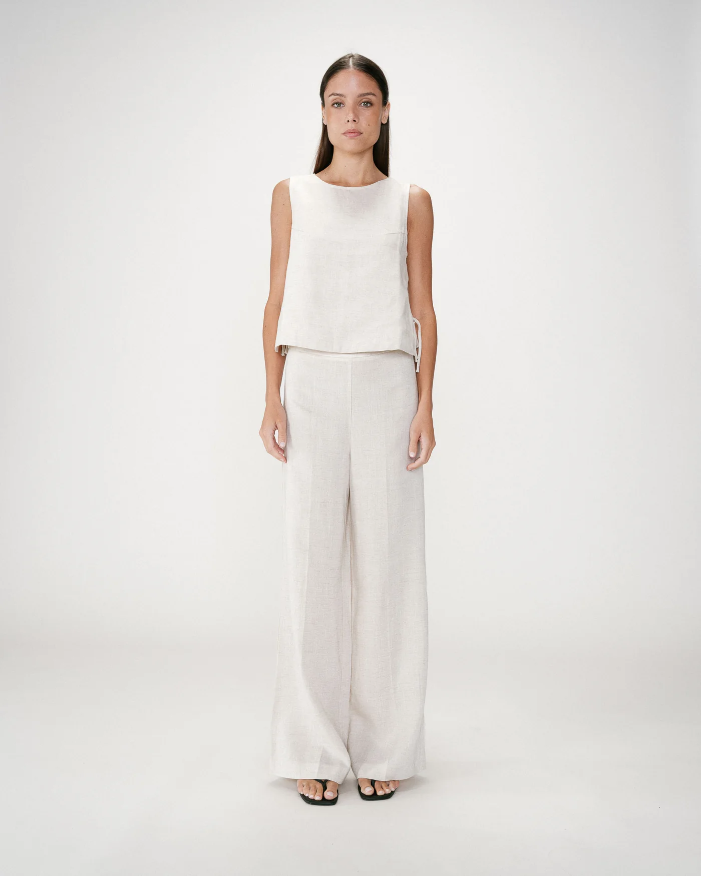 O Wesca Linen Blend Top apresenta linhas simples e elegantes que criam uma silhueta leve e contemporânea. O corte reto e o decote redondo são complementados por detalhes laterais ajustáveis que acrescentam movimento e versatilidade.