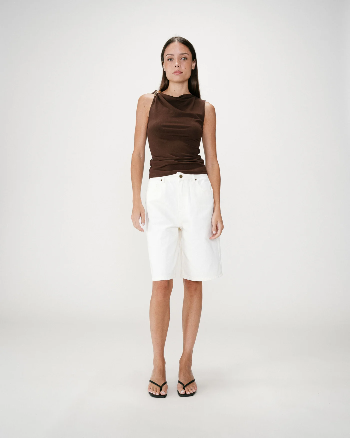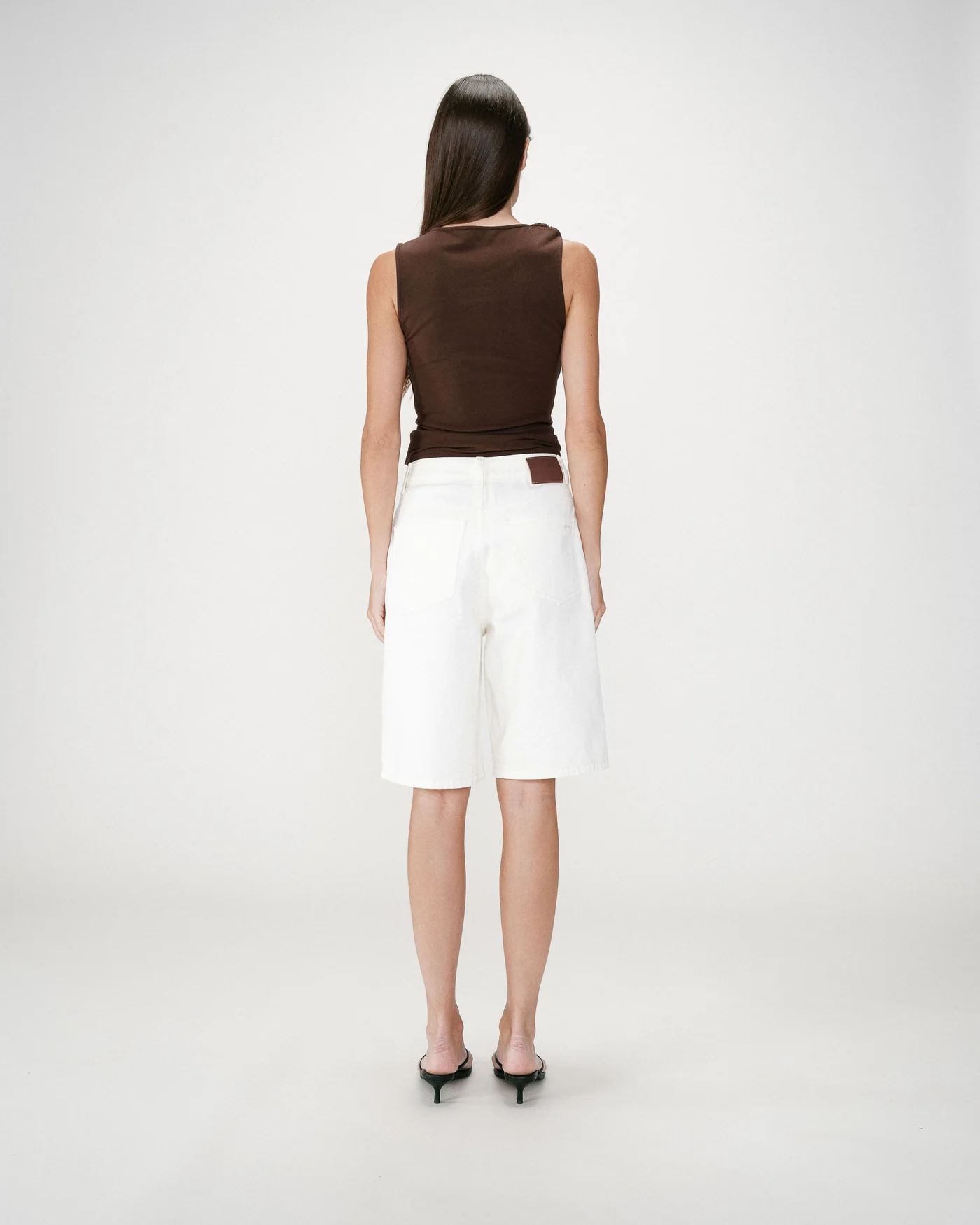 A Will Denim Bermuda é um essencial contemporâneo com inspiração clássica. O corte reto e a cintura subida criam uma silhueta equilibrada, enquanto os detalhes como o jacron em couro e o bordado acrescentam identidade.