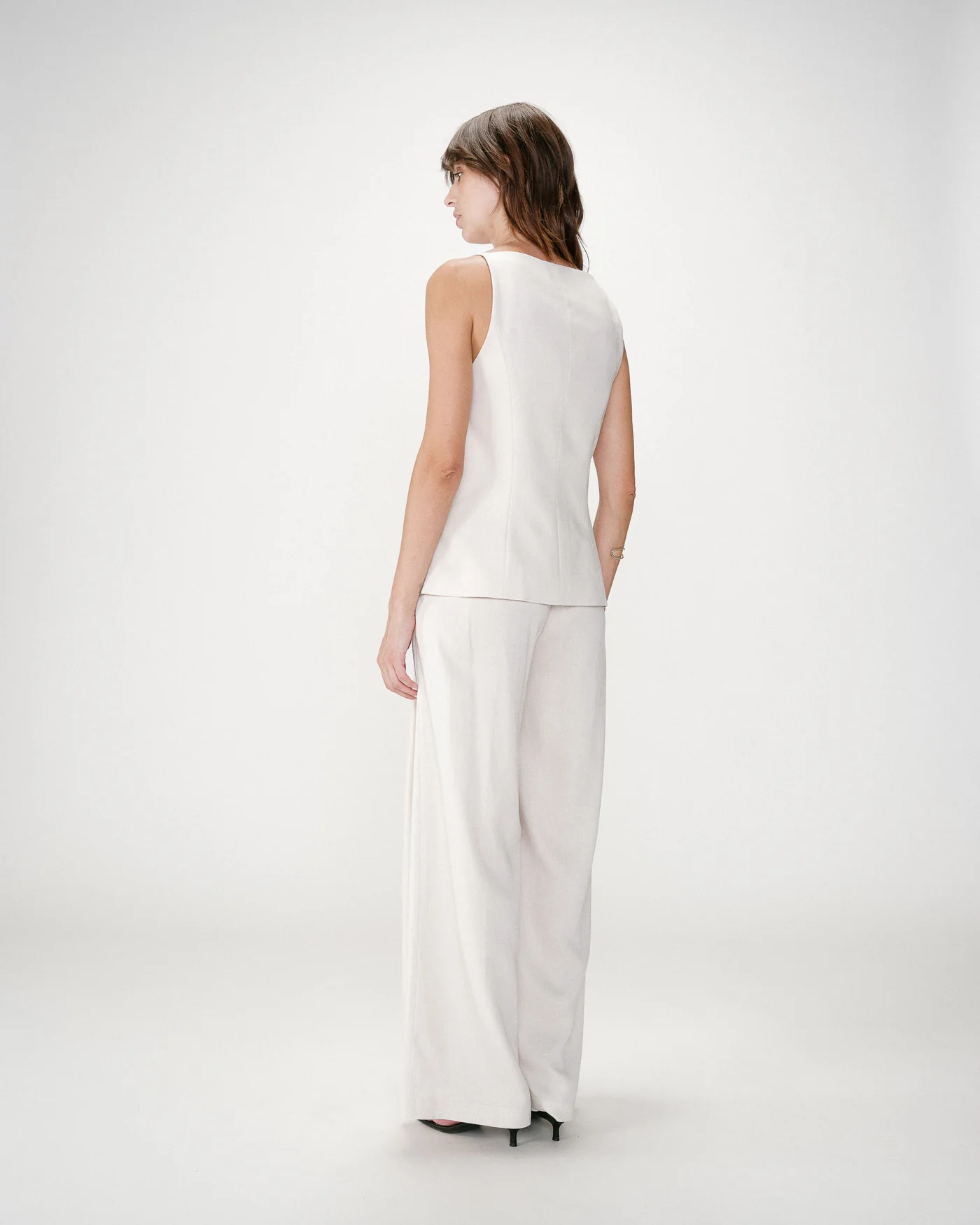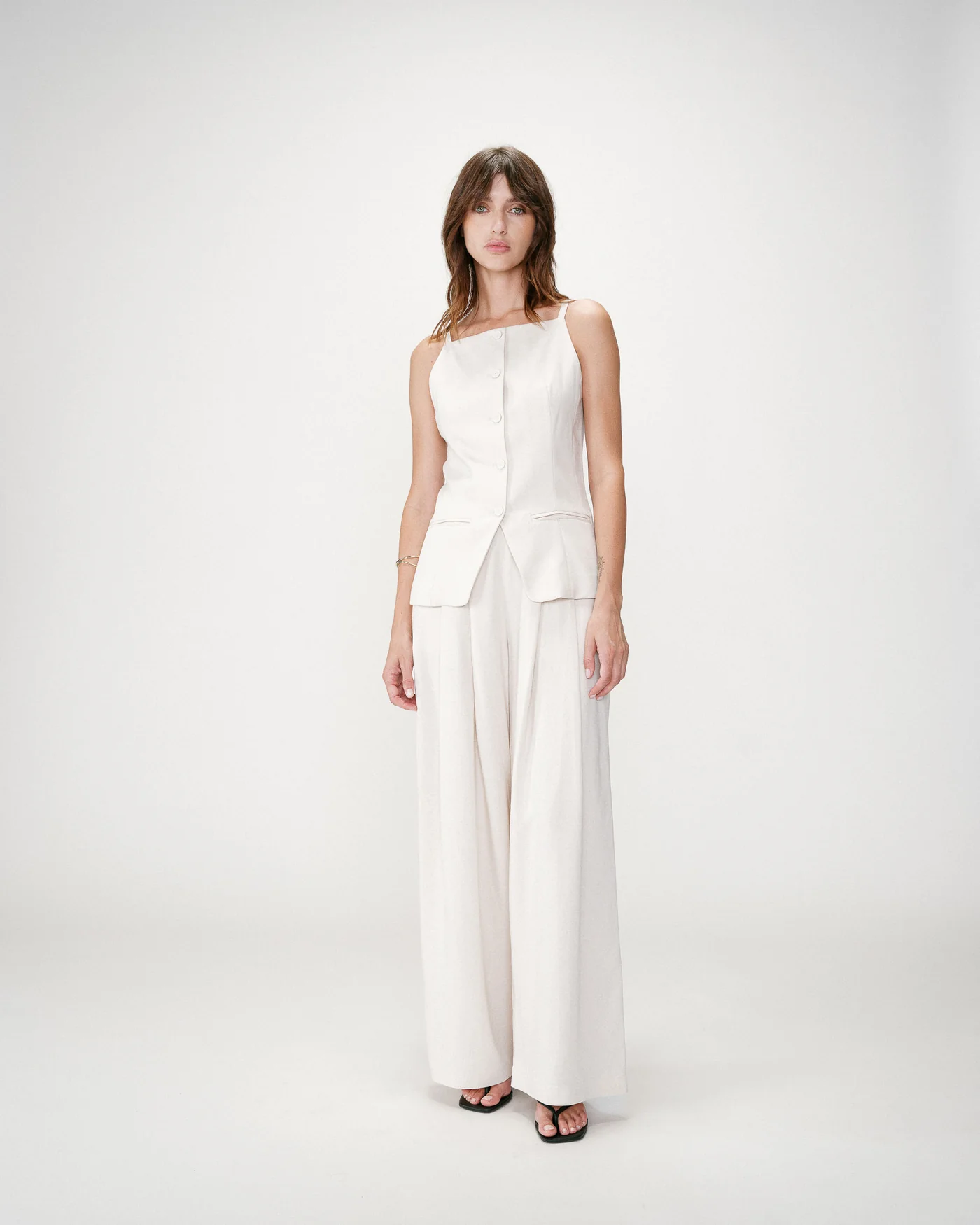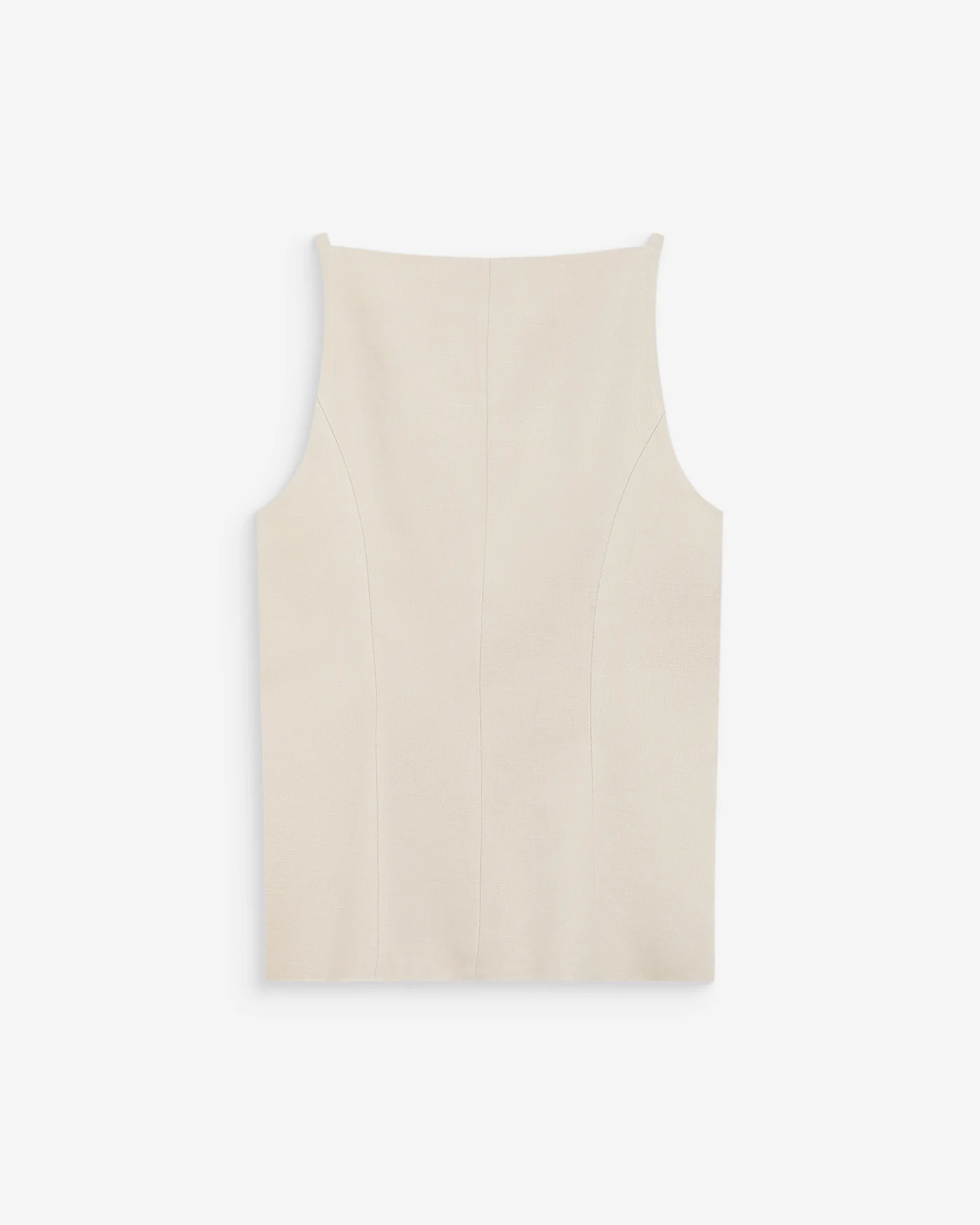 O Winston Tailored Vest traduz uma elegância minimalista com inspiração na alfaiataria. O decote quadrado e as linhas limpas criam uma silhueta moderna, enquanto os botões forrados e o corte estruturado acrescentam sofisticação.