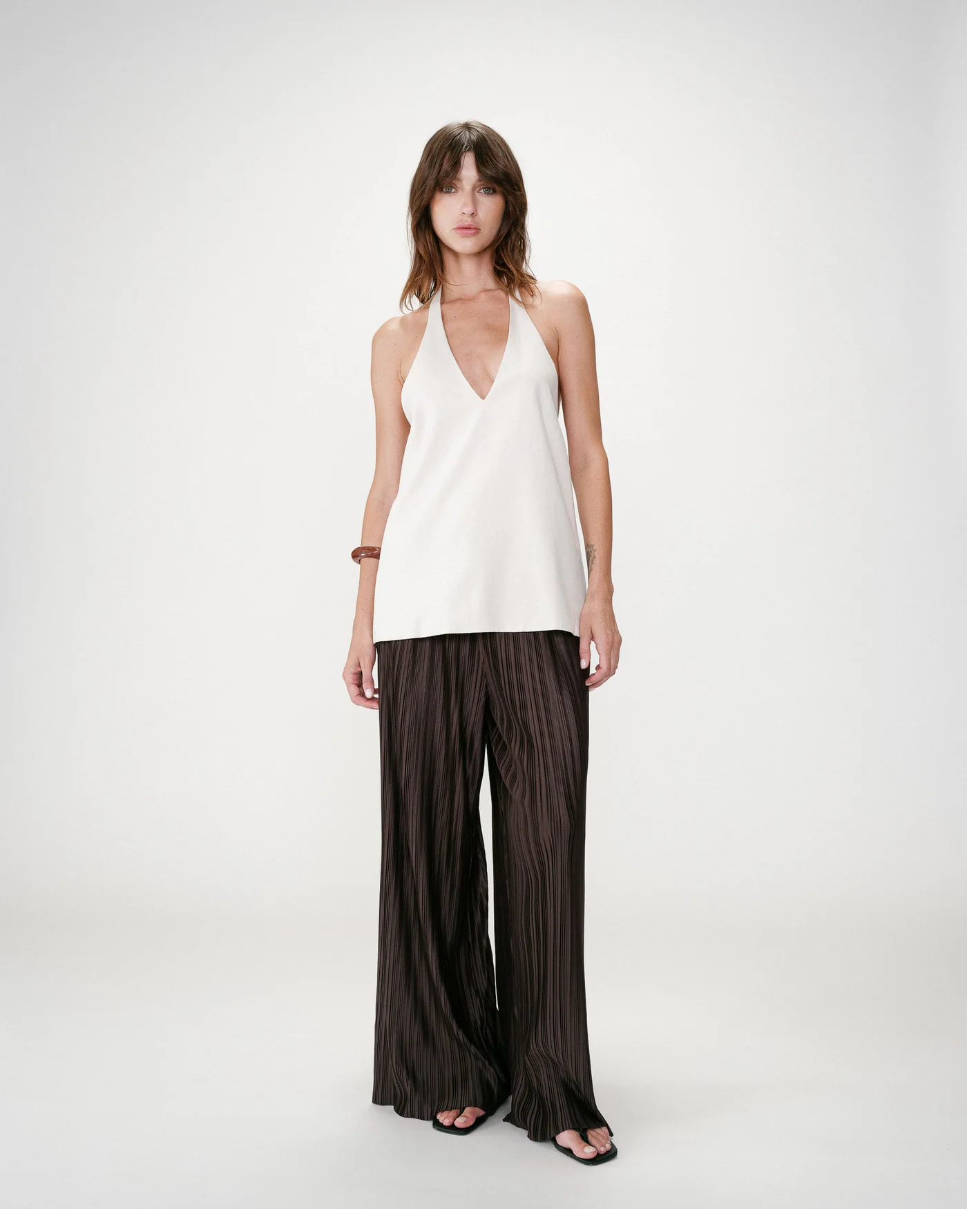 Use com calças fluidas ou capri para um look clean e moderno.