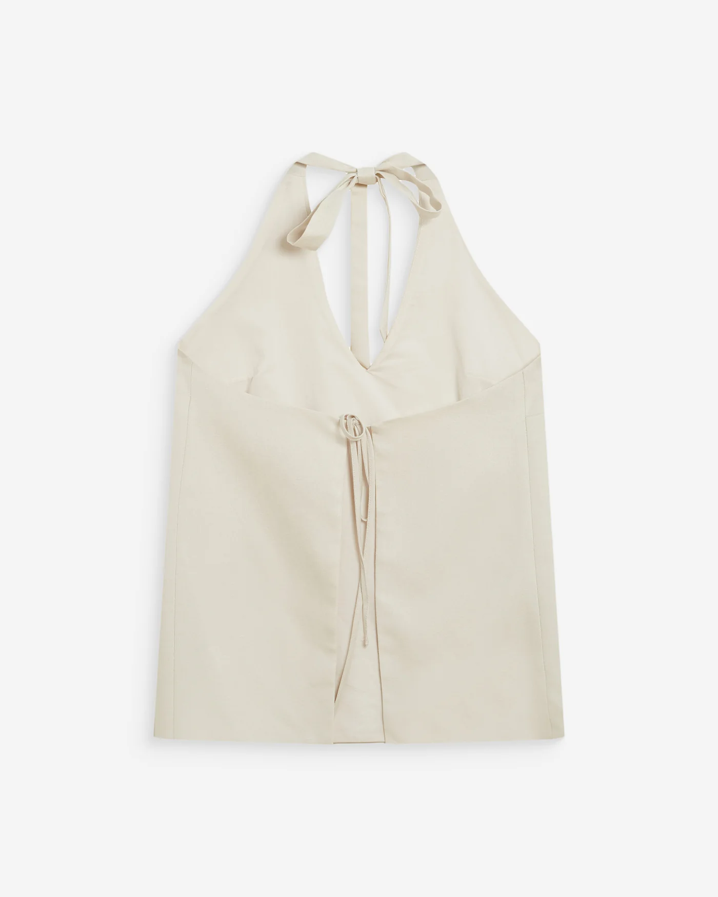 O Wise Backless Top apresenta um design minimalista com um toque sofisticado. O corte amplo e o decote em V são complementados pelas costas abertas com laços, criando uma silhueta leve e contemporânea.