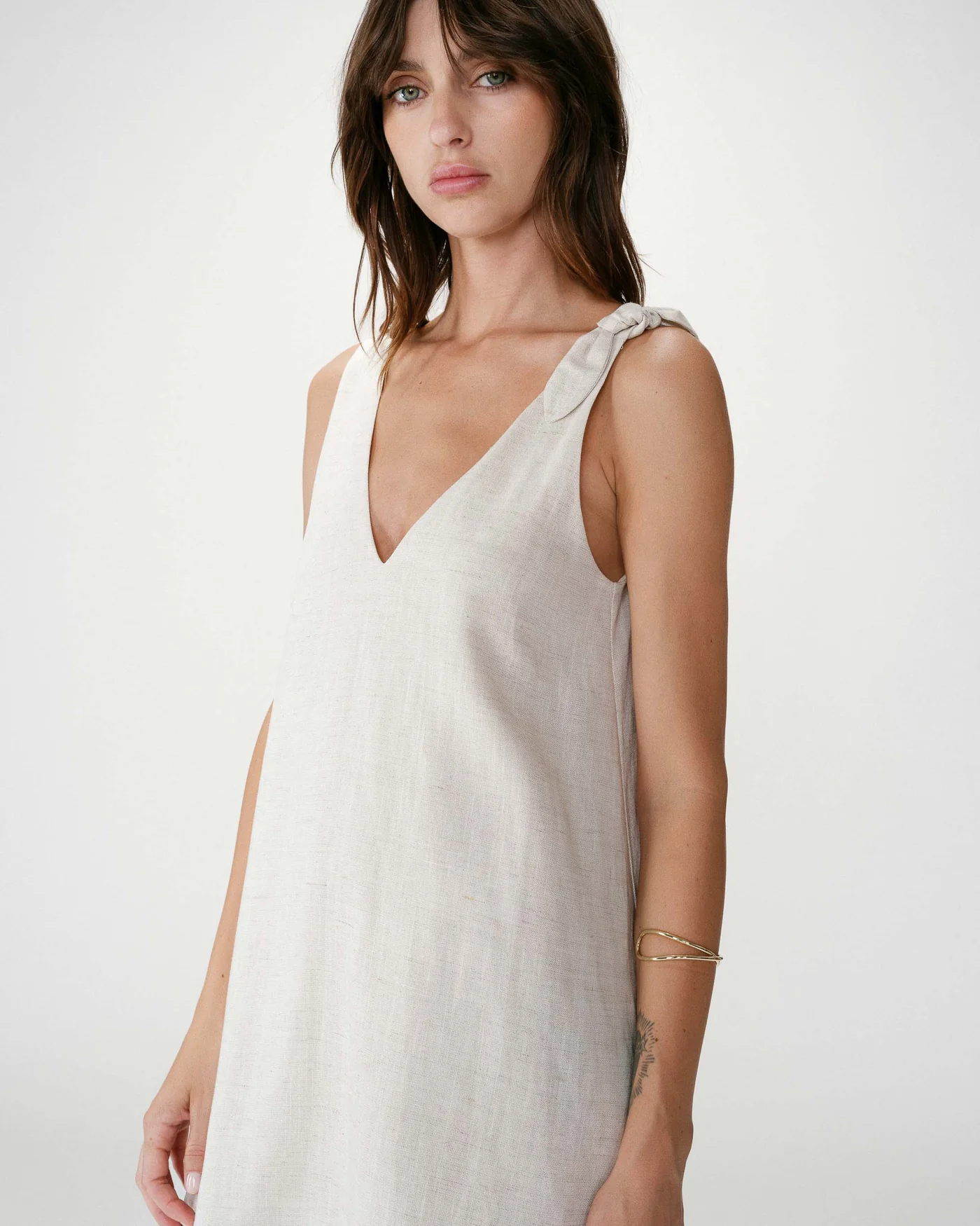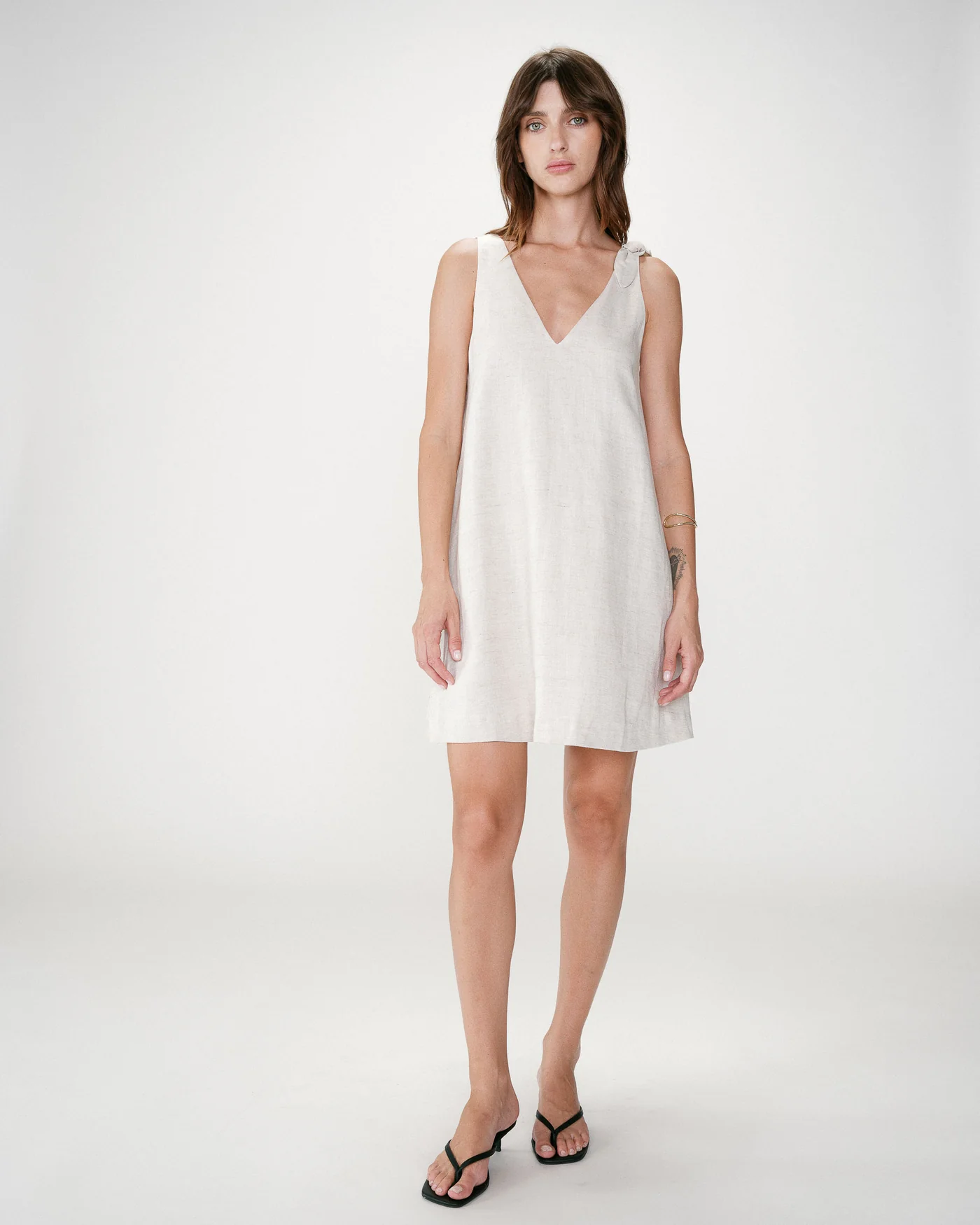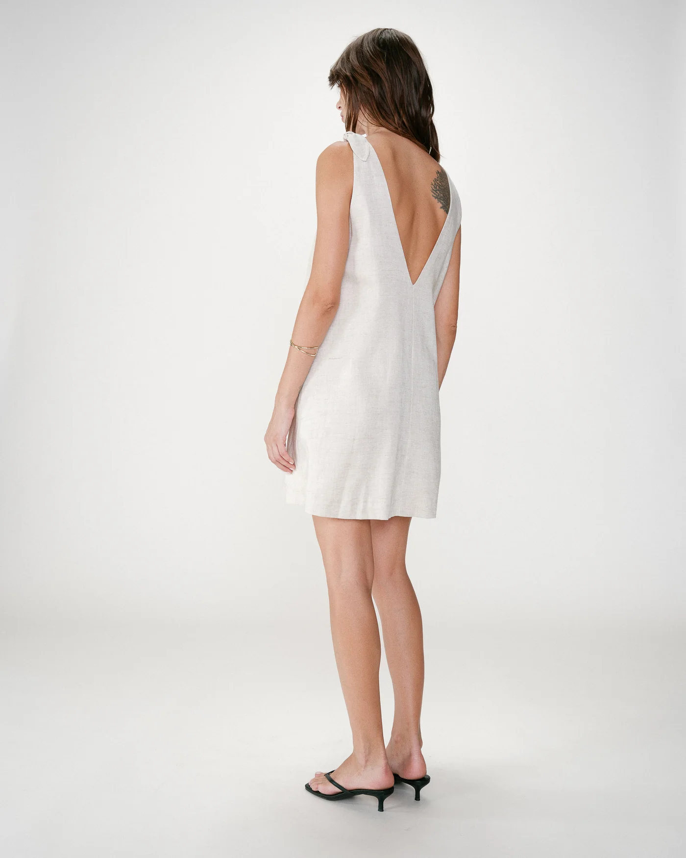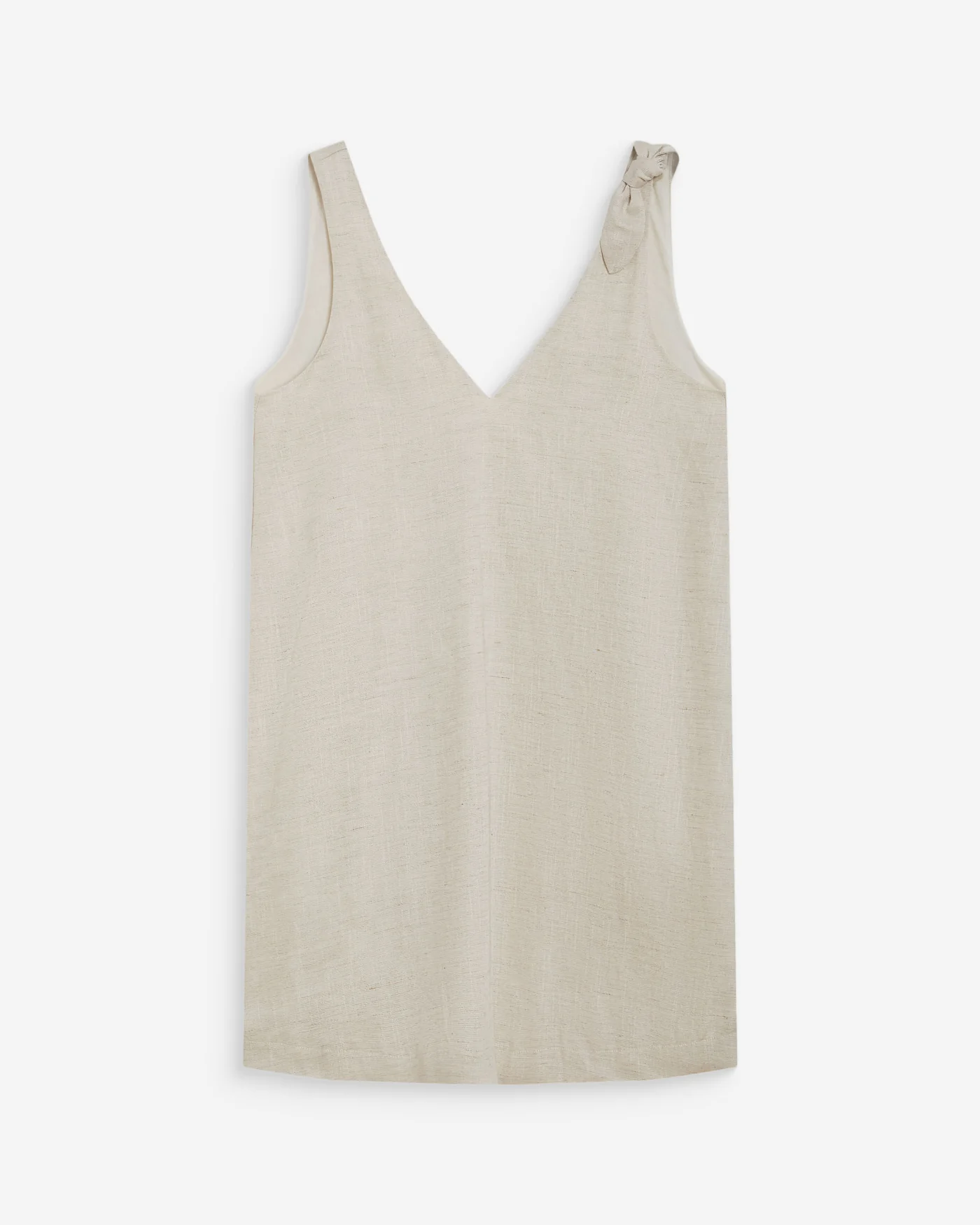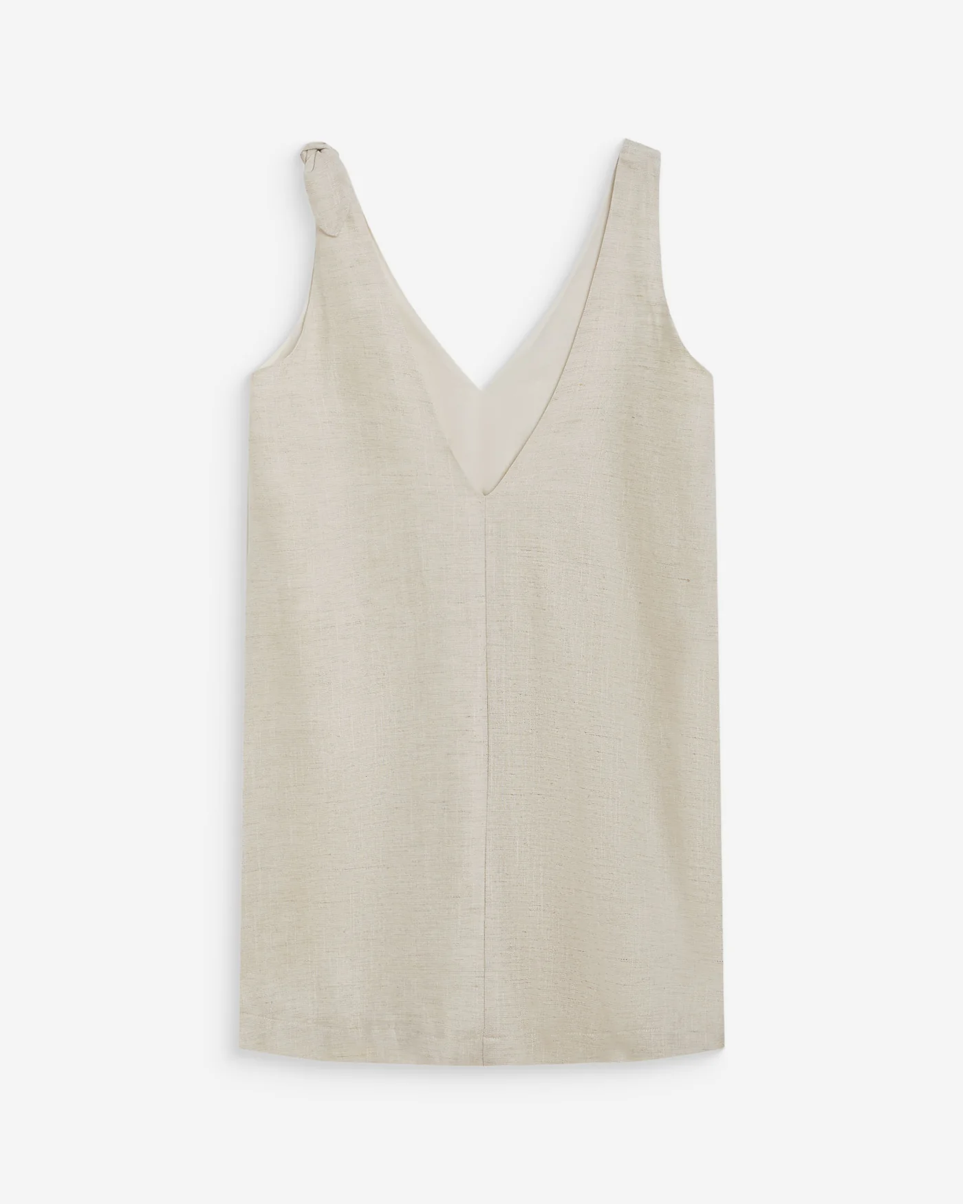 O Wynette Linen Blend Dress é um vestido curto leve e feminino com linhas simples e sofisticadas. O decote em V à frente e nas costas valoriza a silhueta, enquanto o detalhe de nó acrescenta um toque delicado e distintivo.
